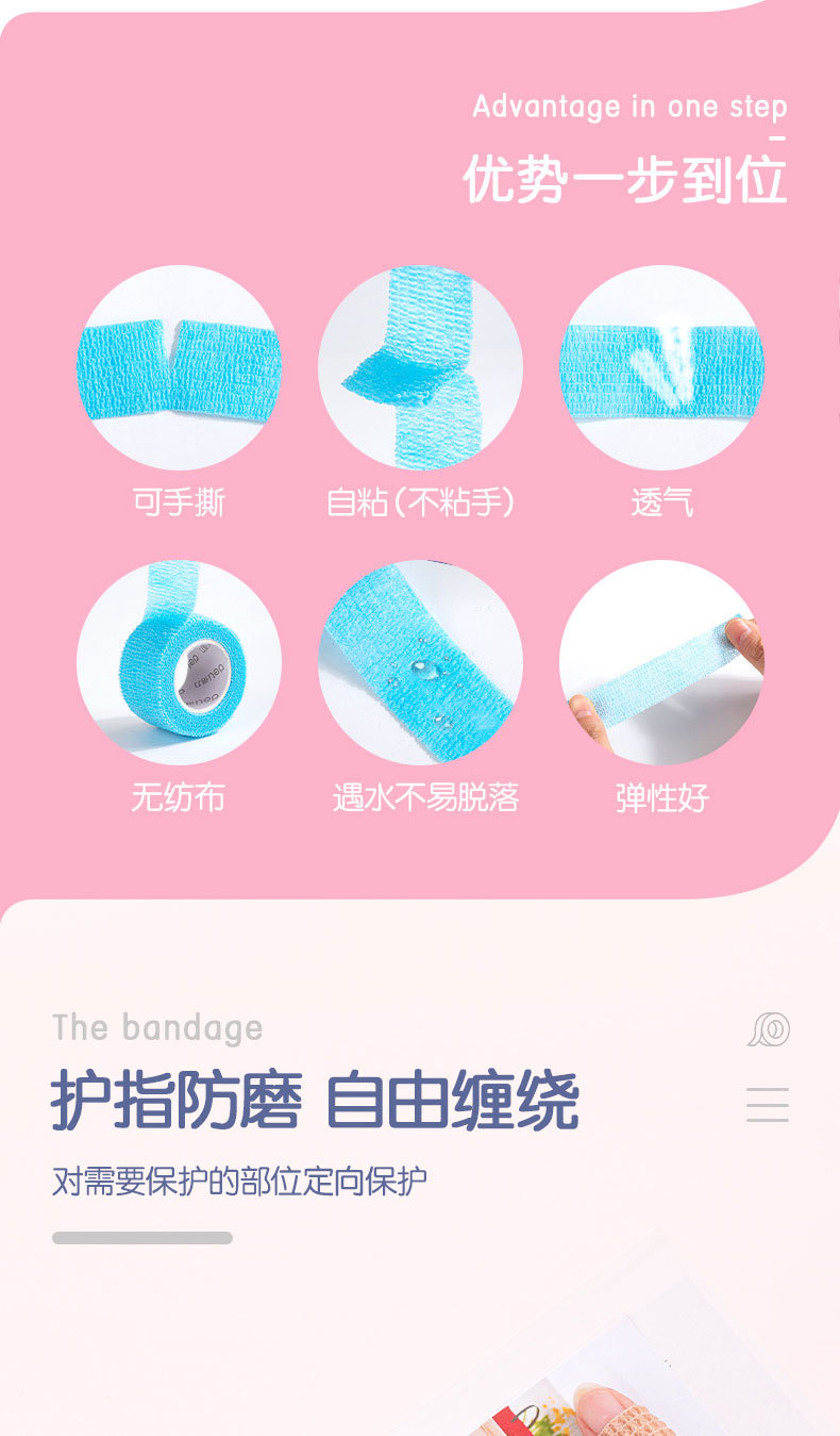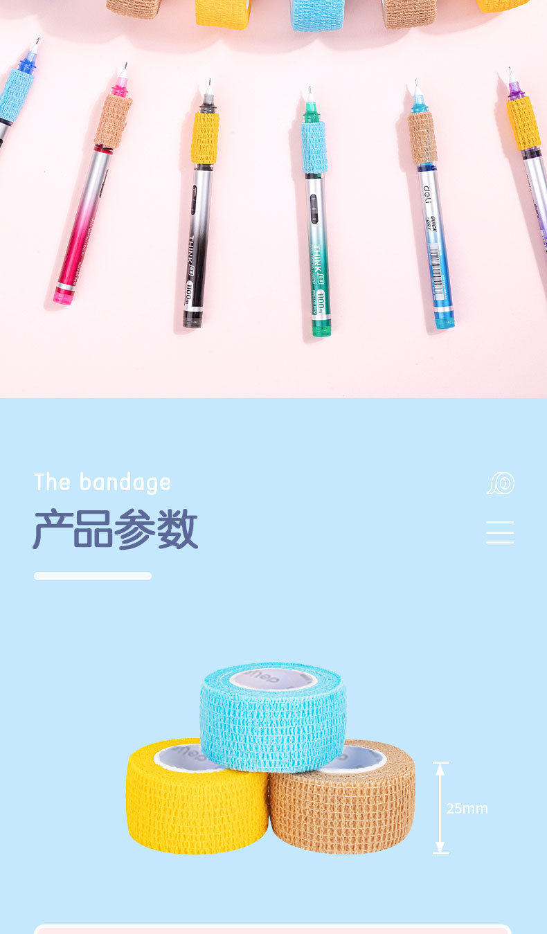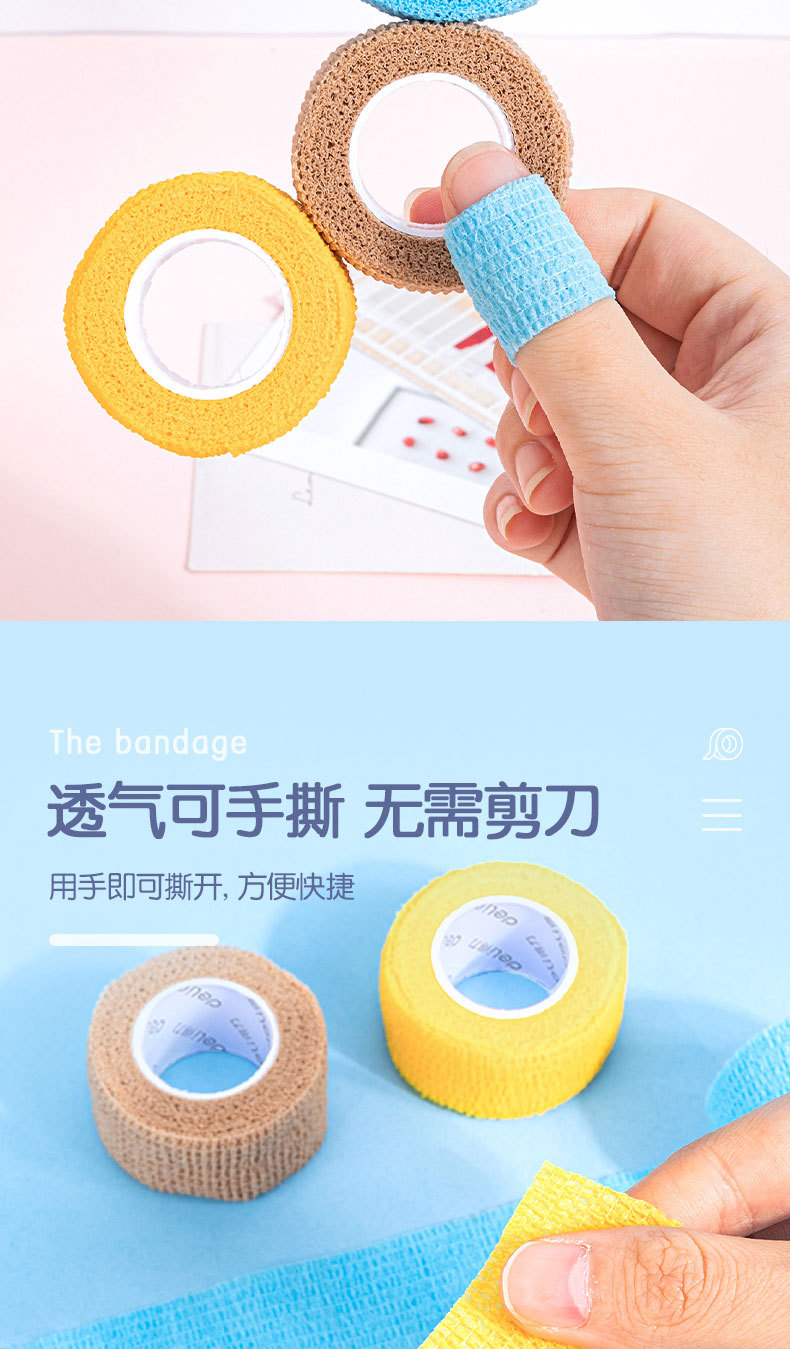 델리 30602 학생 손가락 보호 붕대 무취 방지 누에 고치 자체 접착 탄성 붕대 손가락 보호 3 롤 혼합 색상