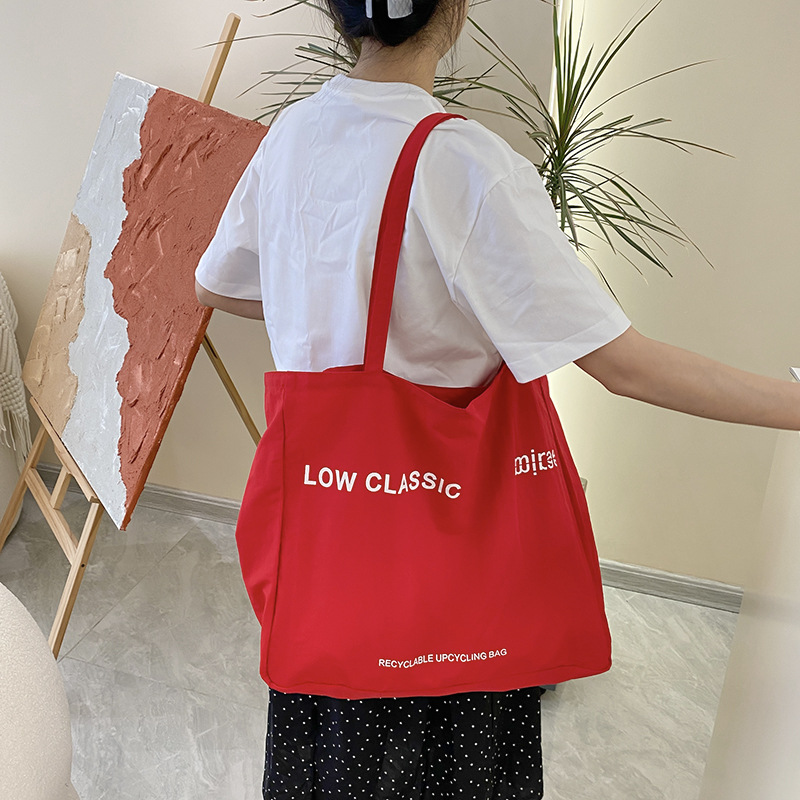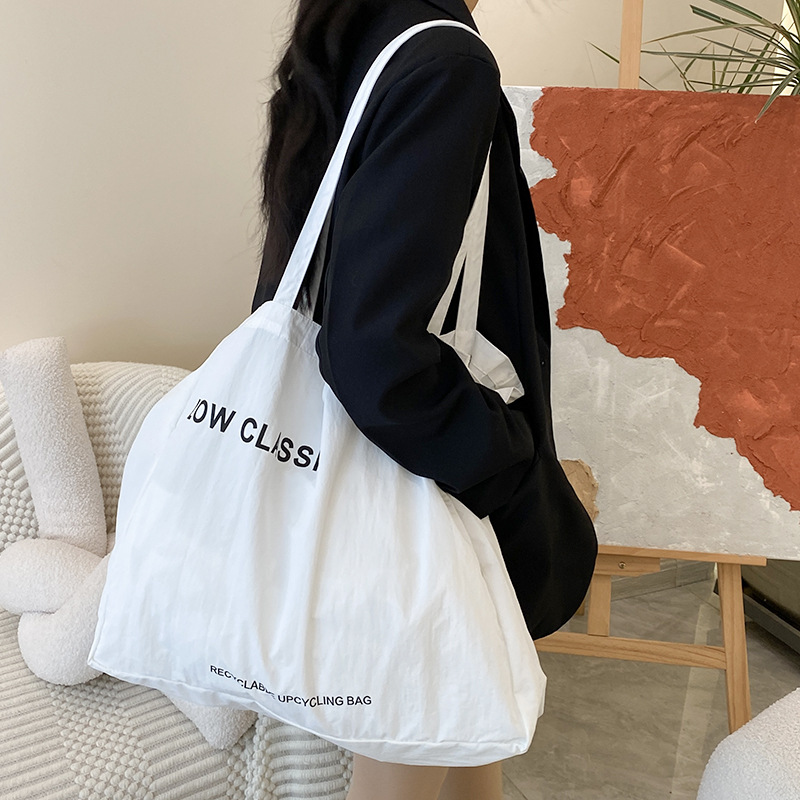 철근 같은 스타일의 캔버스 가방 LOWCLASSIC 대용량 통근 어깨 가방 간단한 쇼핑백 트렌디 한 올매치스토어 가기