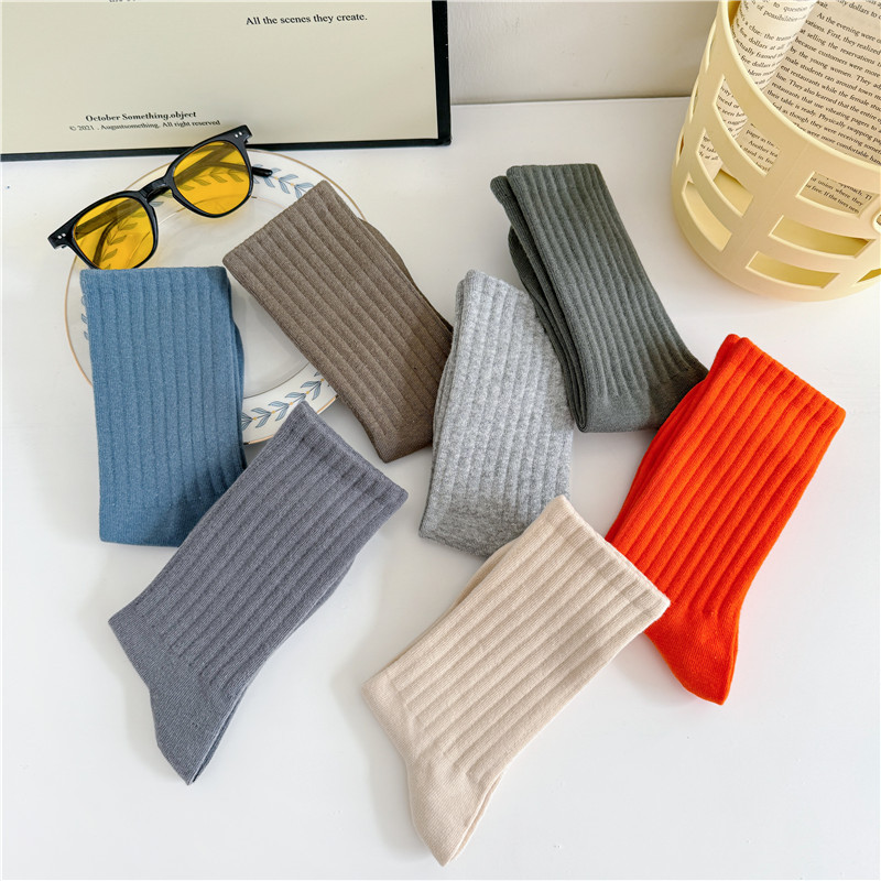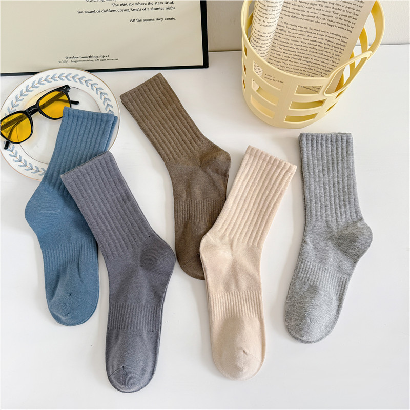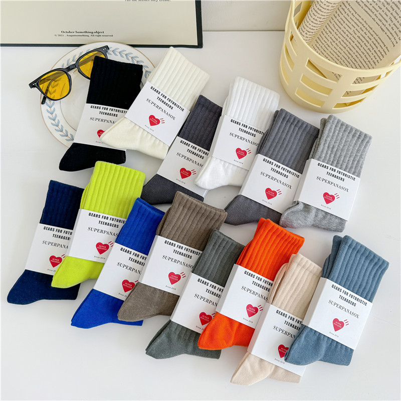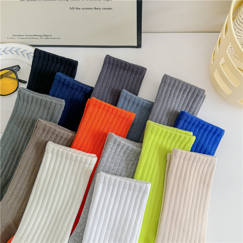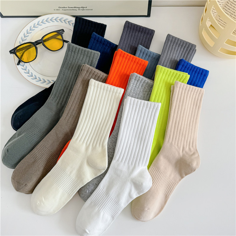 남성과 여성을위한 cityboy 양말 일본식 한국식 Instagram 스타일 트렌디 한 단색 미국 스트리트 톤 단색 스포츠 미드 튜브 양말