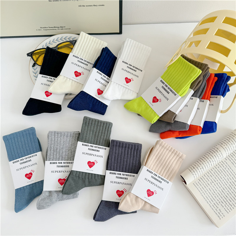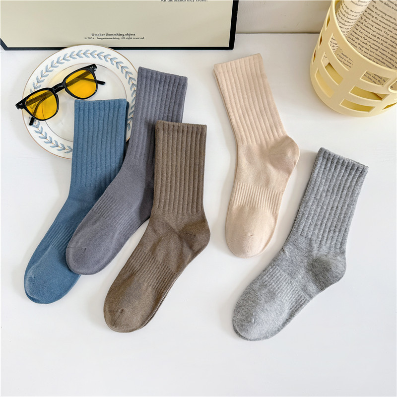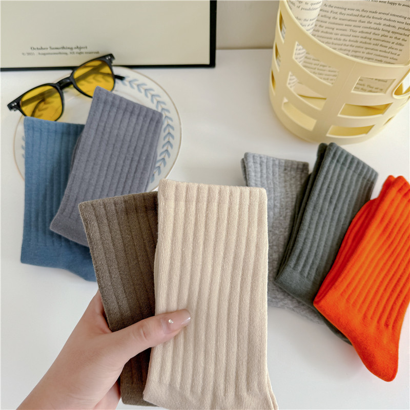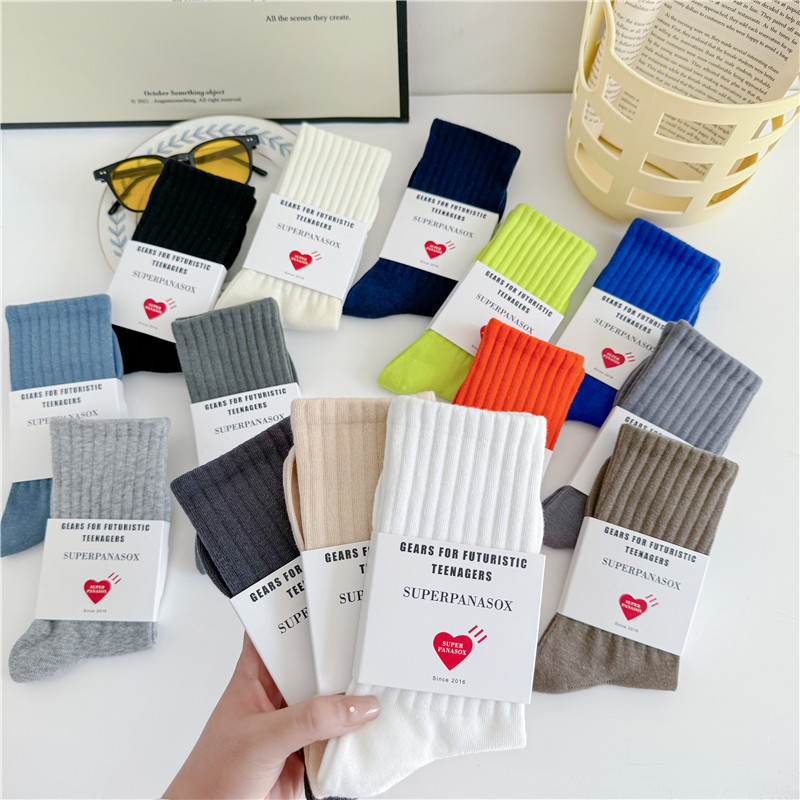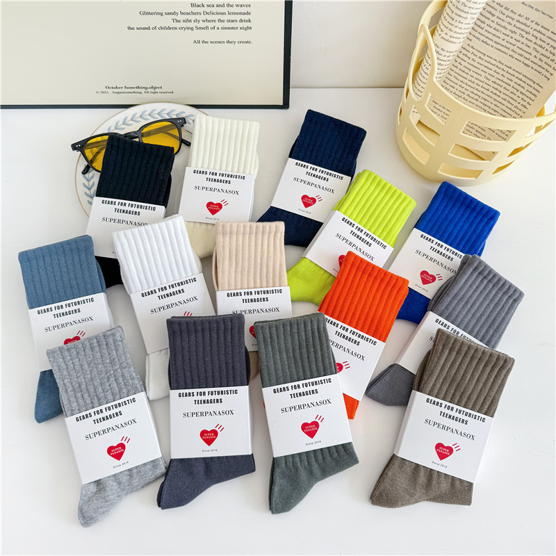 남성과 여성을위한 cityboy 양말 일본식 한국식 Instagram 스타일 트렌디 한 단색 미국 스트리트 톤 단색 스포츠 미드 튜브 양말