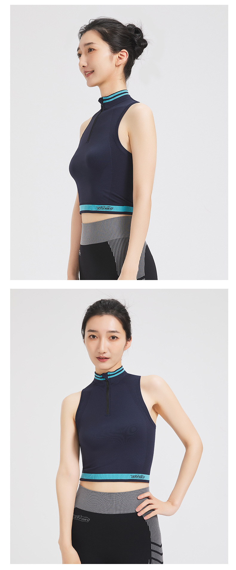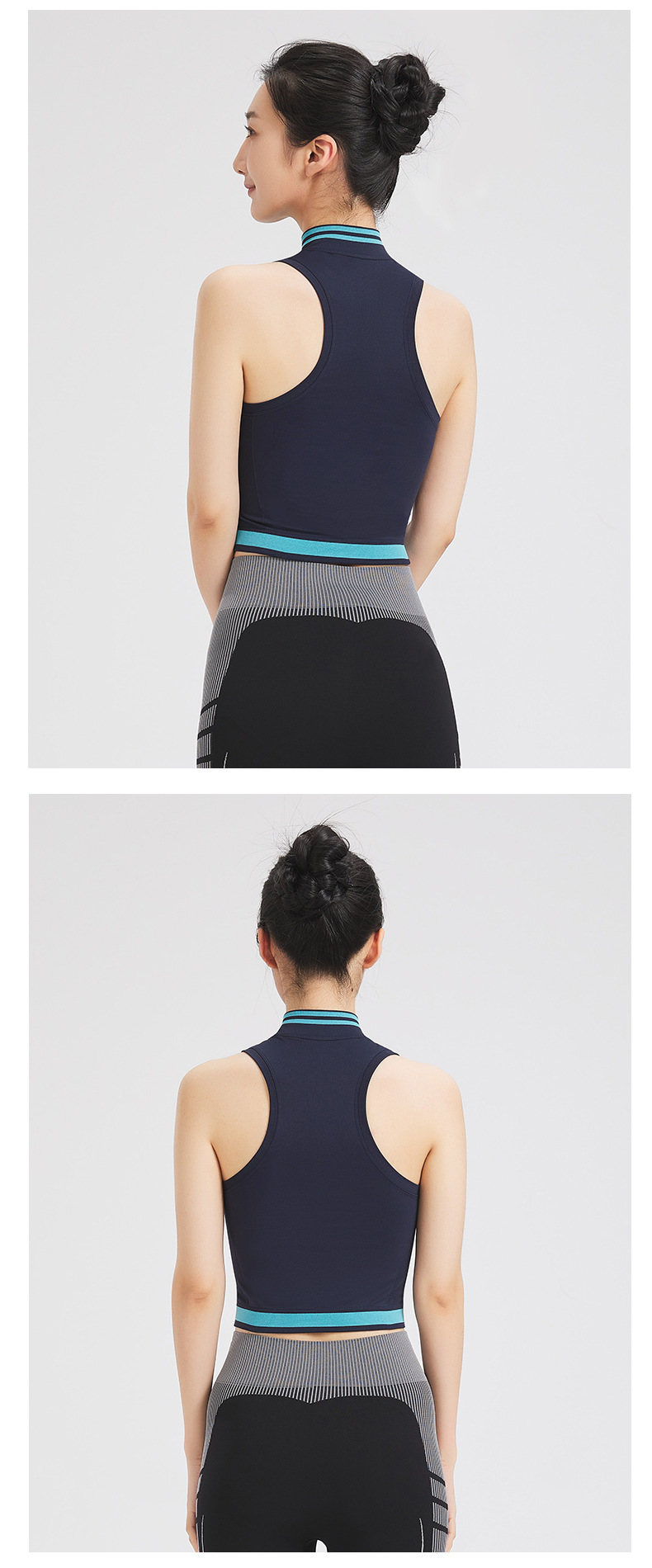 야외 하이킹 등반 땀이 나는 반 지퍼 스트레치 원활한 탑 하이 칼라 민소매 스포츠 달리기 요가 조끼