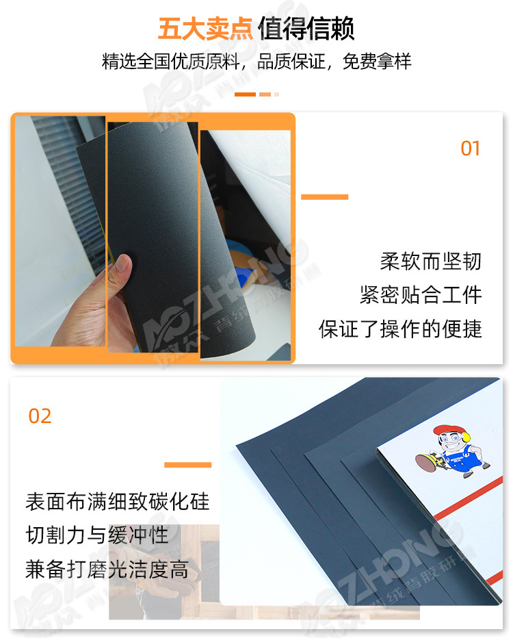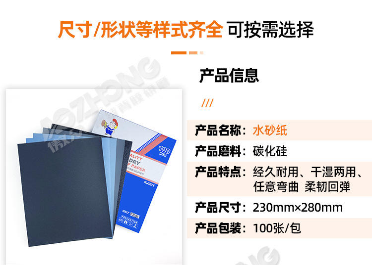 제조 업체 도매 실리콘 카바이드 사포 건식 및 습식 가구 자동차 목재 가공 DIY 연삭 및 연마 물 사포