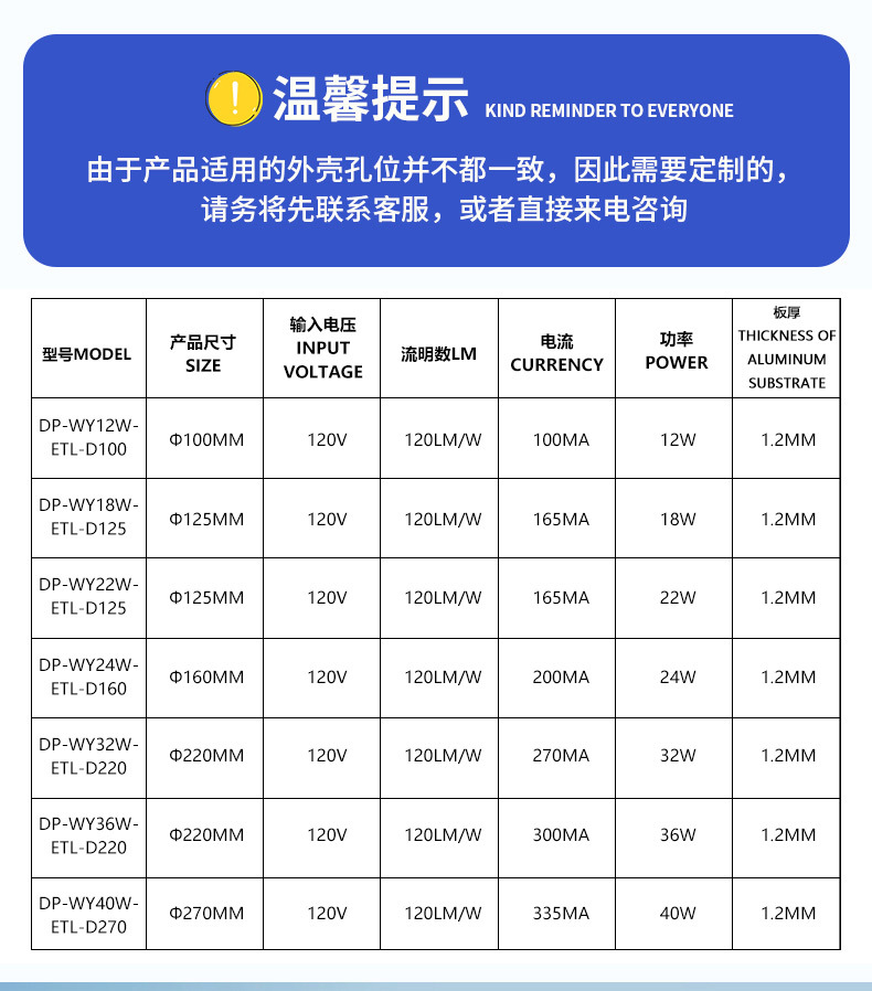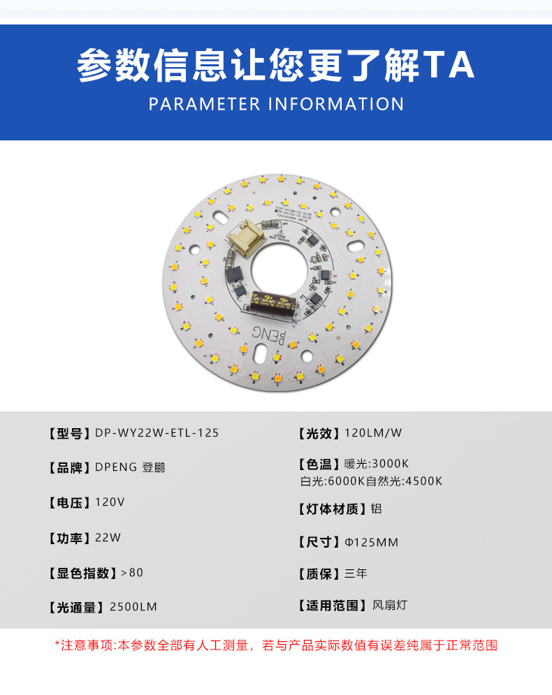 160mm 直径24W参数: