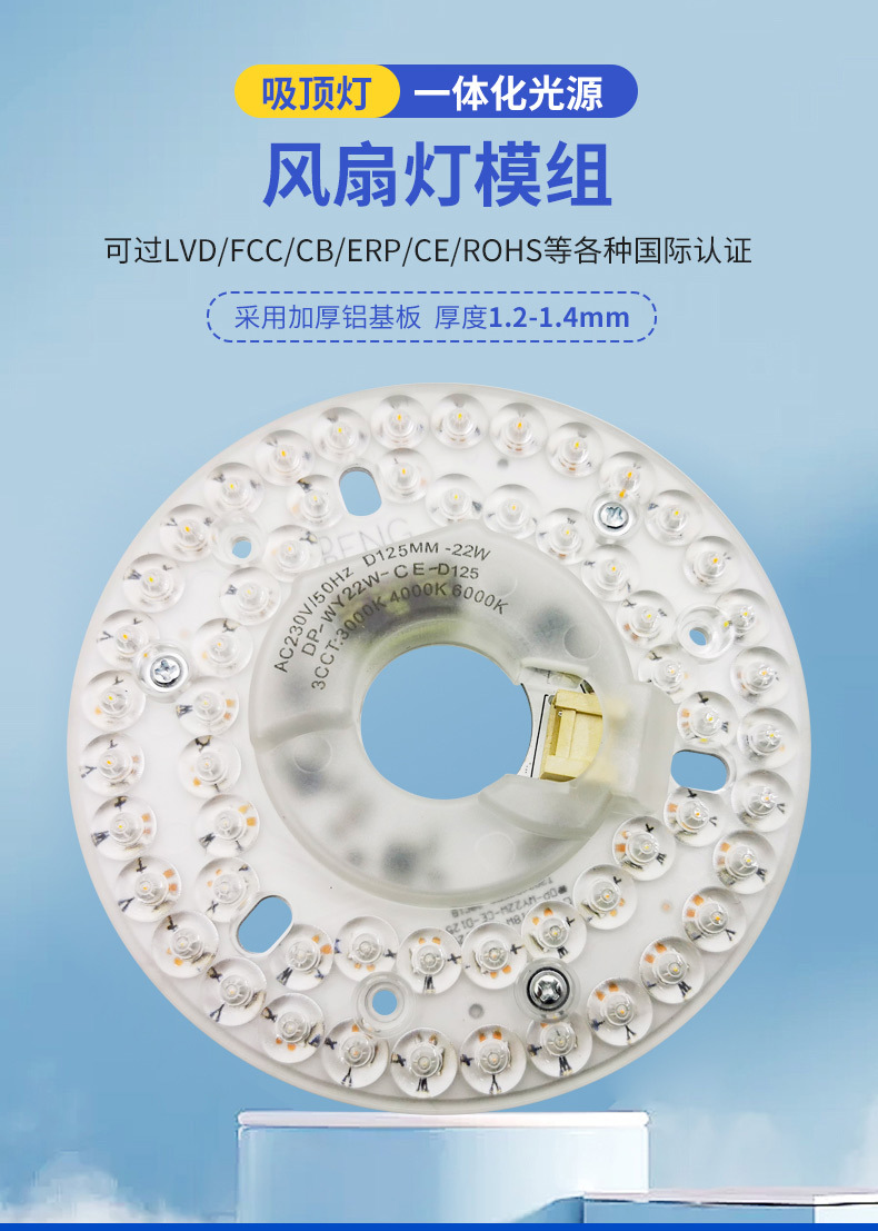 Led 심지 교체 심지 팬 광원 모듈 에너지 절약 3 색 디밍 18w22w 라운드 led 천장 조명