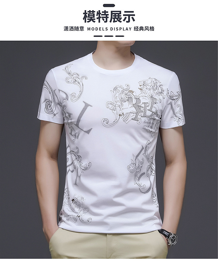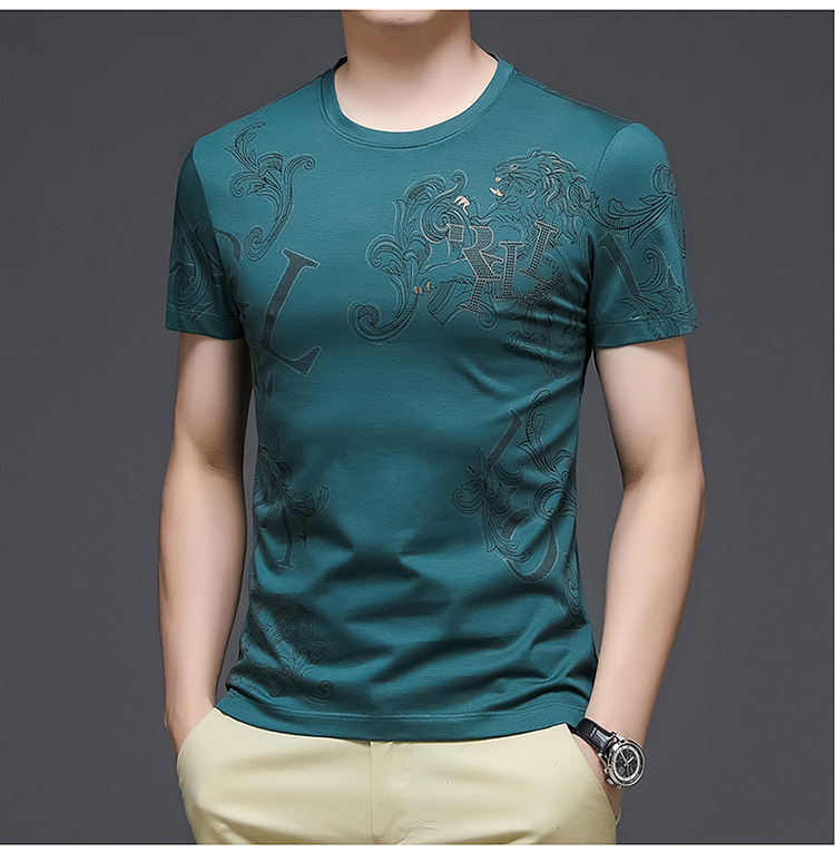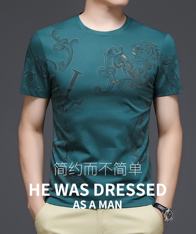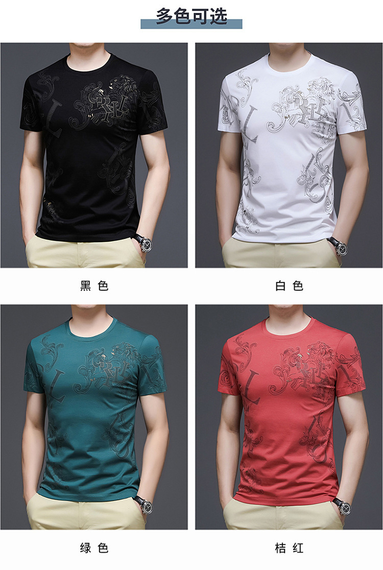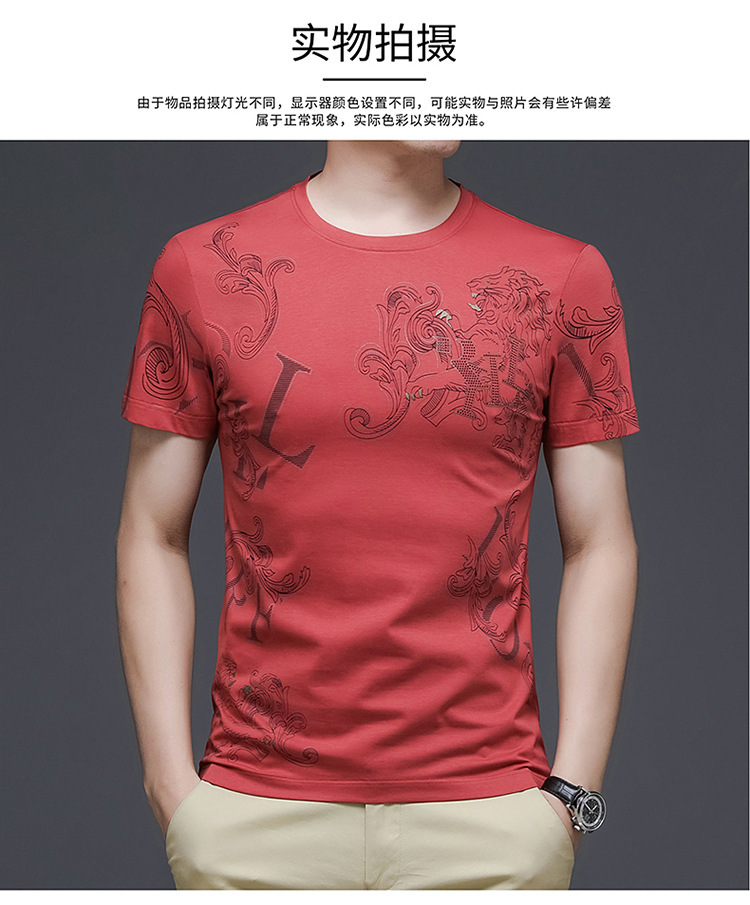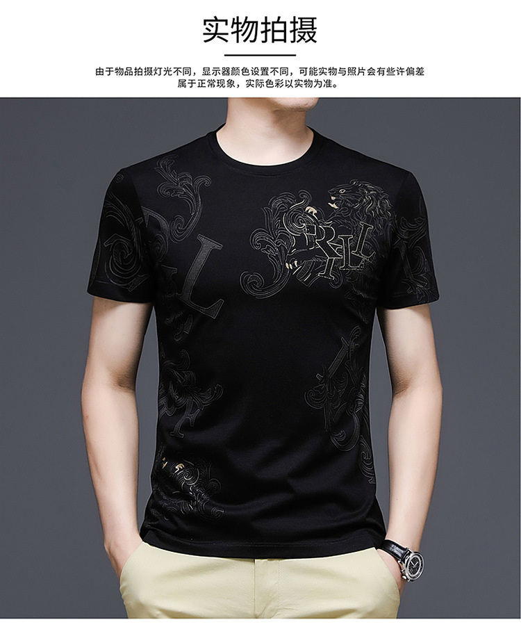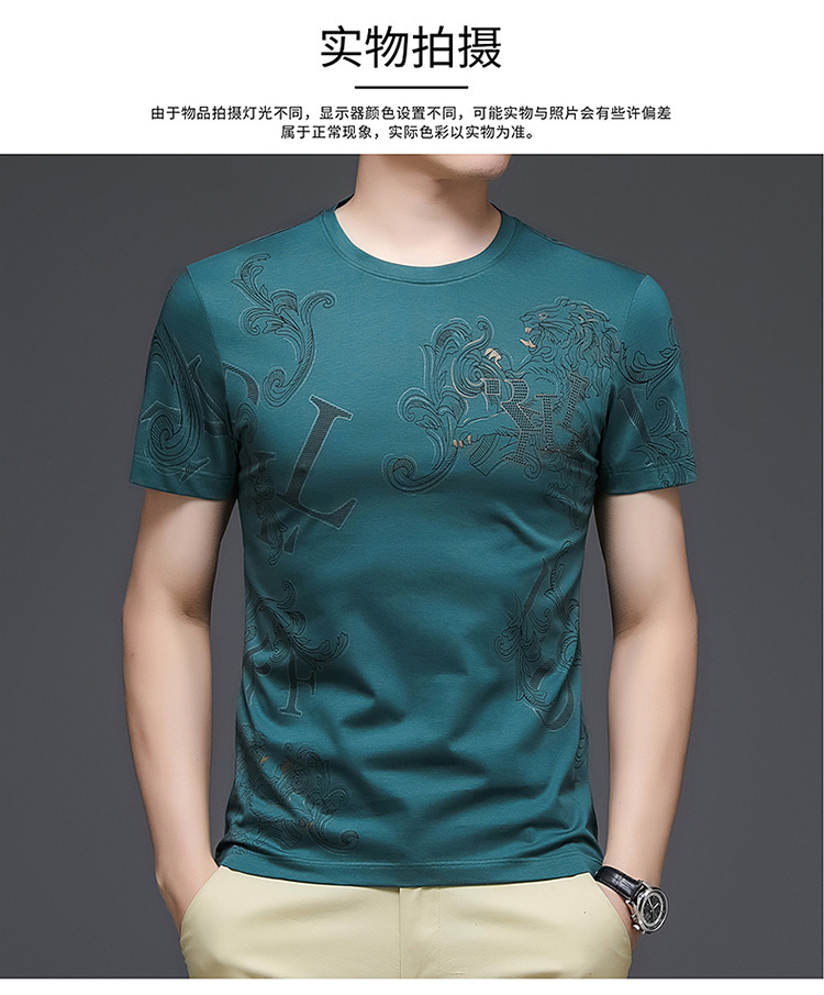 丝光棉短袖t恤男夏季潮牌动物纹圆领冰丝薄款中青年休闲半袖上衣