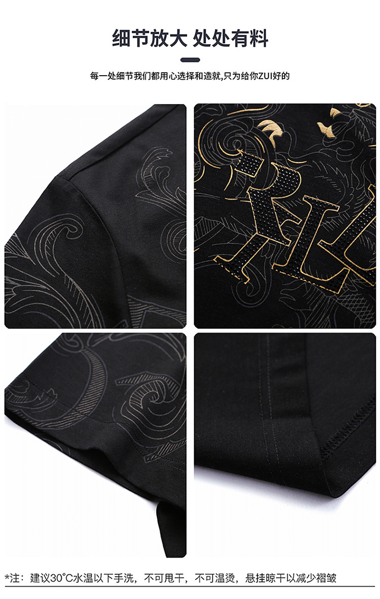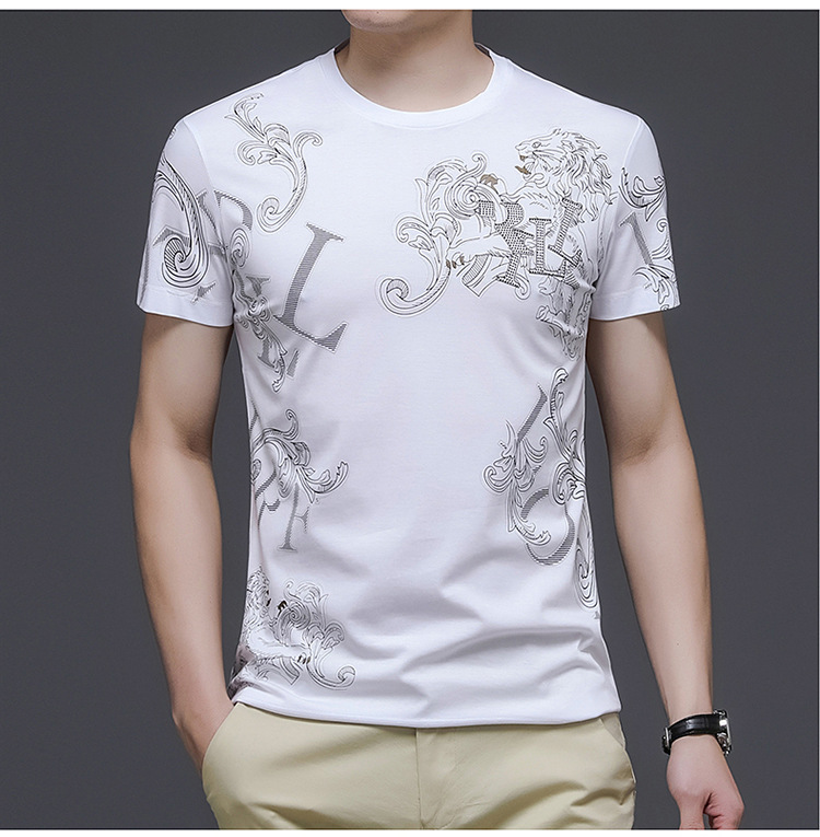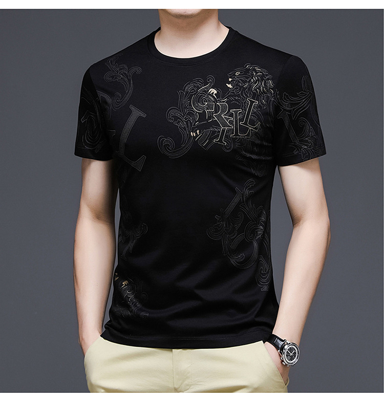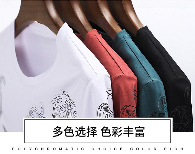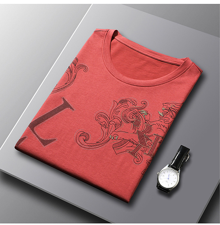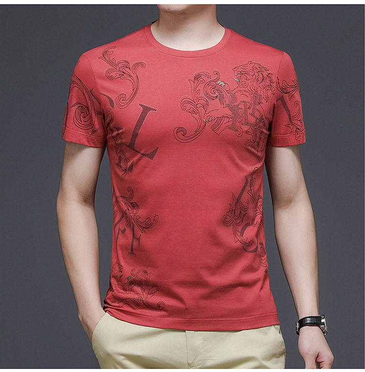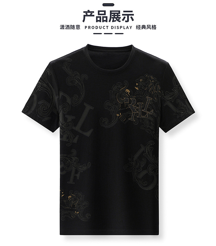 丝光棉短袖t恤男夏季潮牌动物纹圆领冰丝薄款中青年休闲半袖上衣