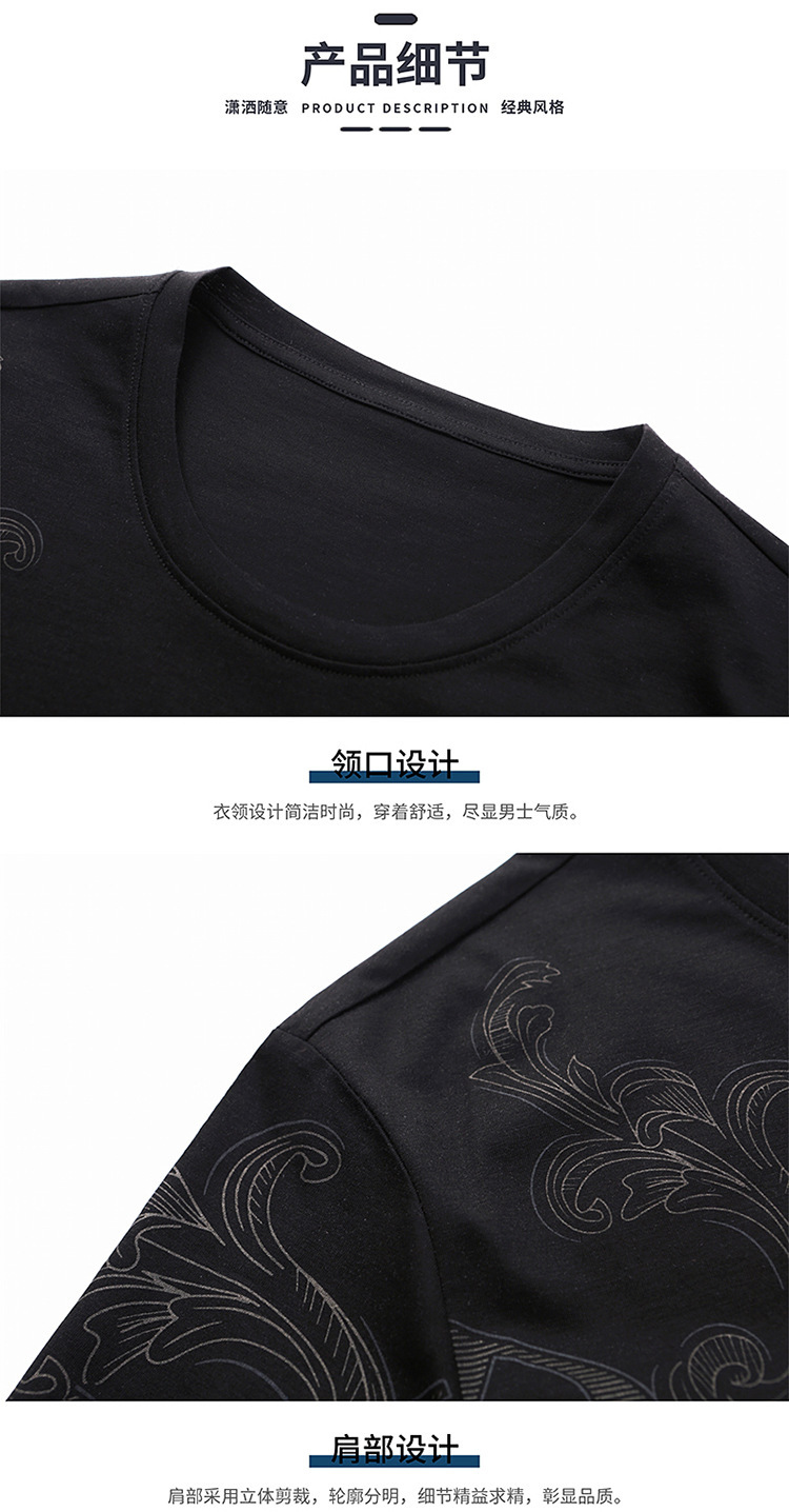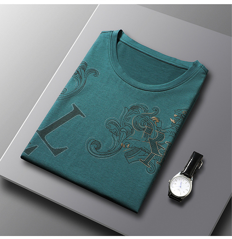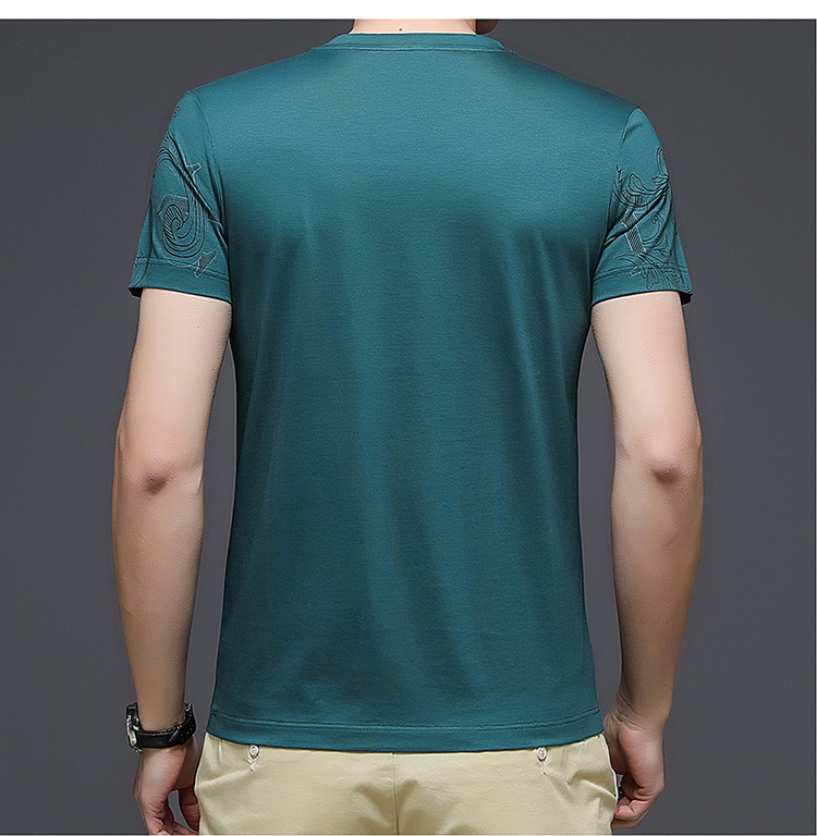 머서화 된면 반팔 티셔츠 남성 여름 패션 브랜드 동물 패턴 둥근 목 얼음 실크 얇은 중년 캐주얼 반소매 탑