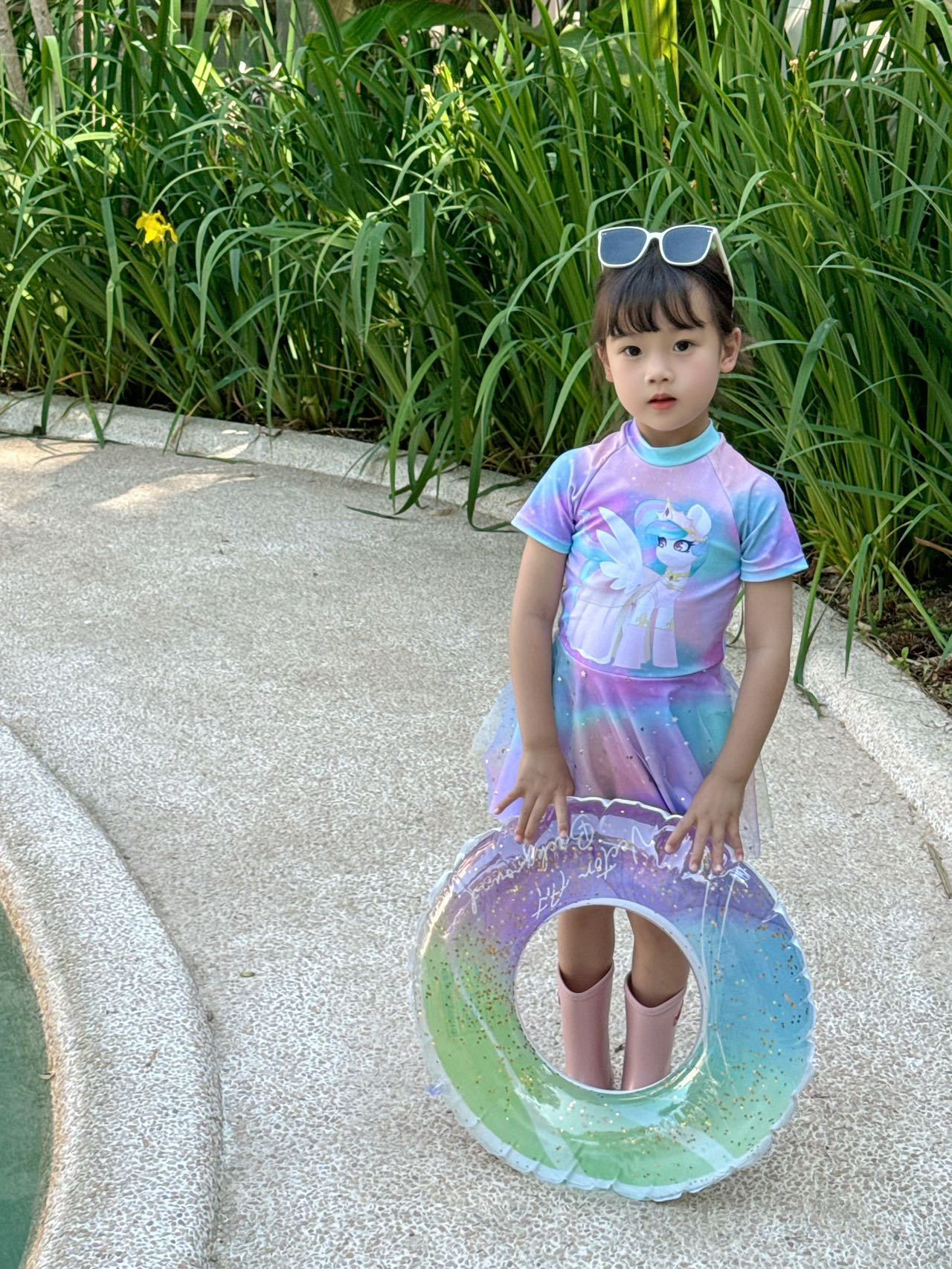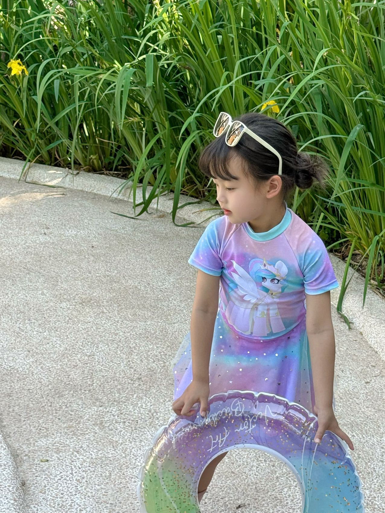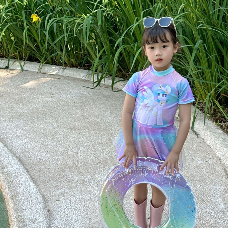 2024 새로운 여자 수영복 원피스 스커트 박스 반팔 어린이 수영복 포니 폴리 프린세스 수영복스토어 가기