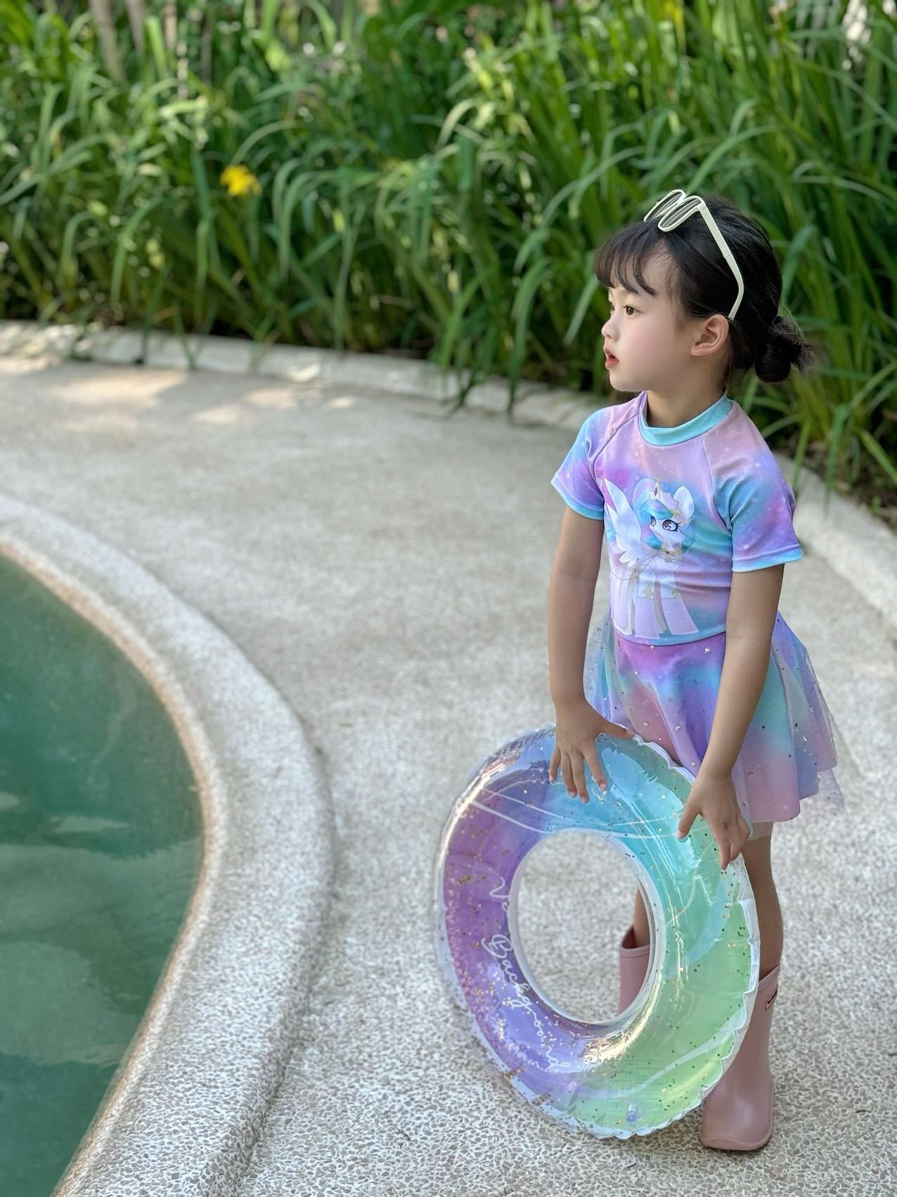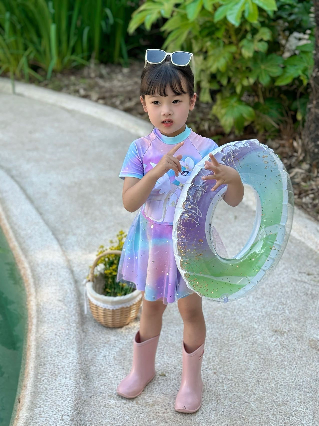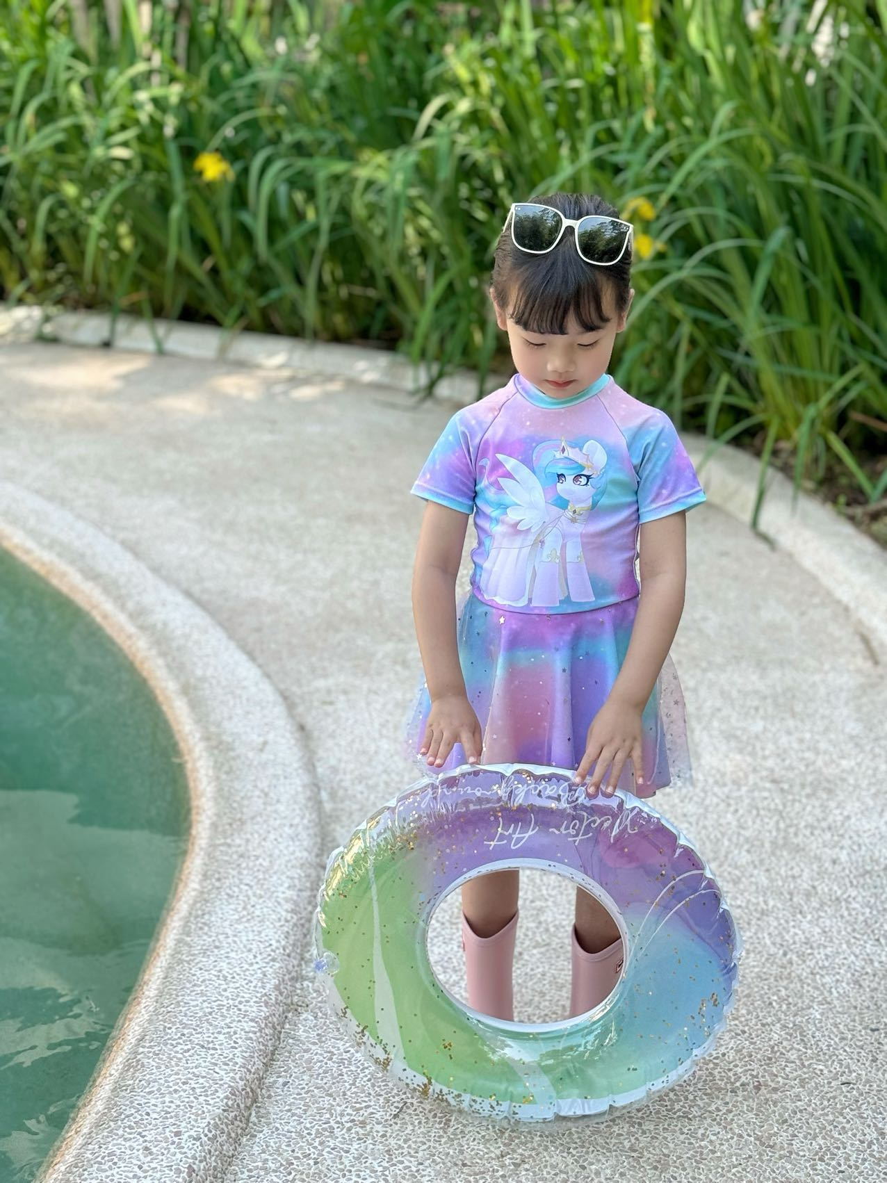 2024 새로운 여자 수영복 원피스 스커트 박스 반팔 어린이 수영복 포니 폴리 프린세스 수영복스토어 가기