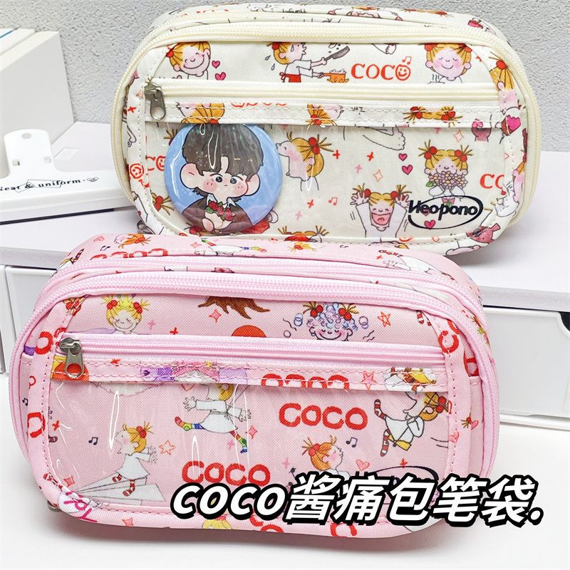 Ins 일본 COCO 소스 다기능 연필 가방 학생 대용량 귀여운 소녀의 심장 문구 보관 가방스토어 가기