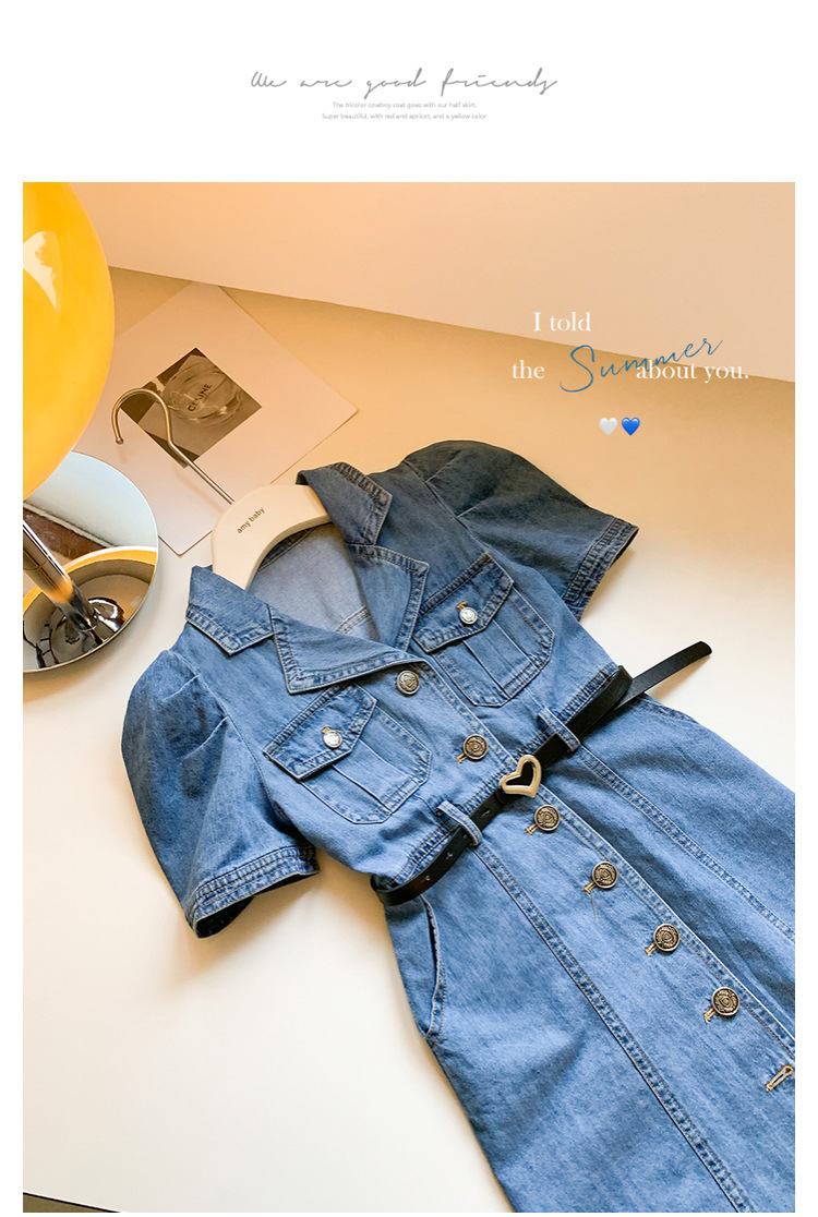 77271 여자 데님 원피스 2024 새로운 여름 얇은 데님 기질 레트로 올 매치 원피스