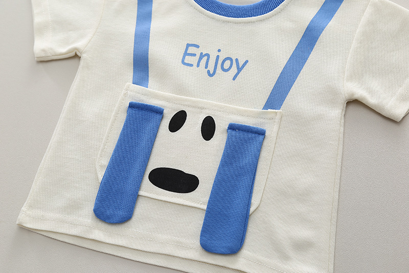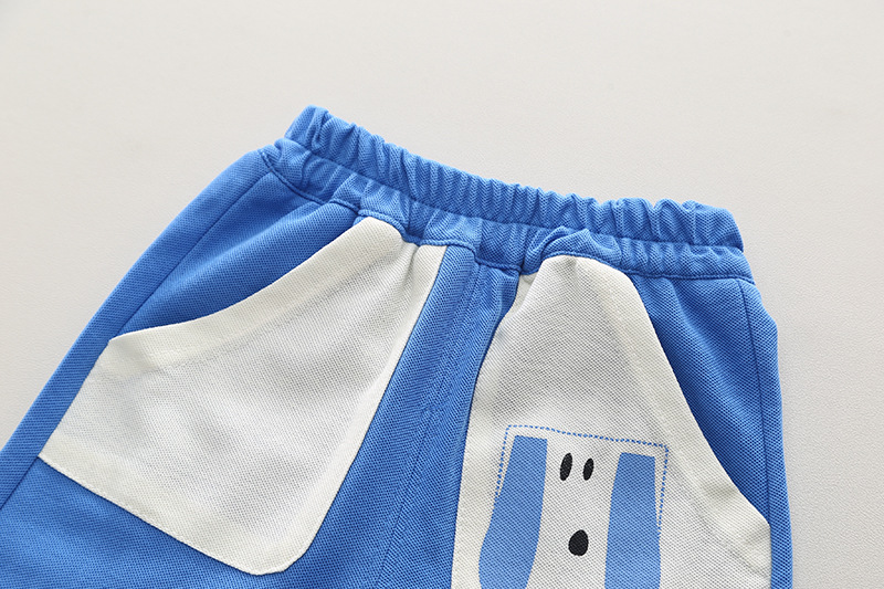 여름 세련 된 아기 두 조각 세트 소년 새로운 여름 잘 생긴 얇은 개 큰 주머니 반팔 세트 멋진 핸들