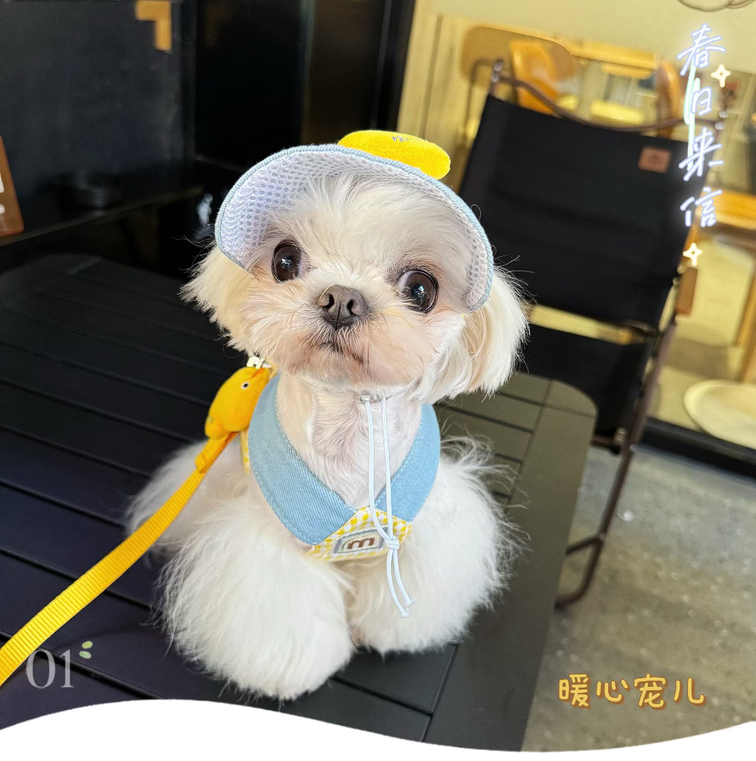 따뜻한 심장 사랑하는 원래 국경 봄과 여름 애완 동물 가슴과 뒤로 견인 고양이 개 옷 나들이 오리 견인 세트