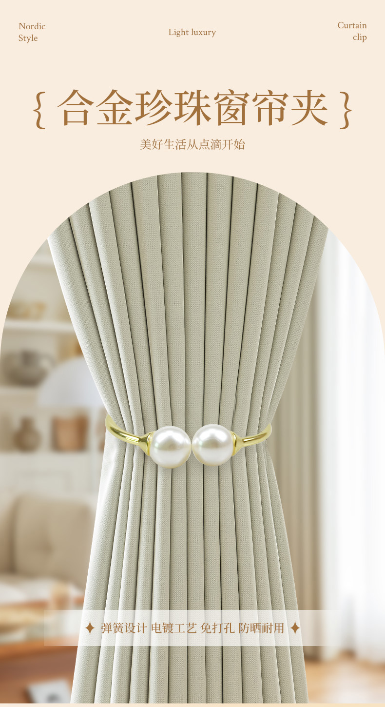 진주 커튼 버클 라이트 럭셔리 하이 엔드 간단한 천공 커튼 스트랩 거실 장식 금속 커튼 클립