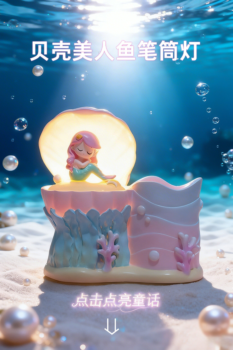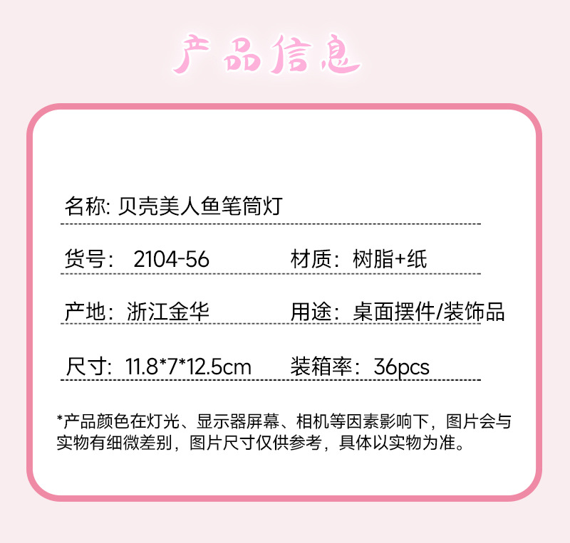 【商品名称】2104-56贝壳美人鱼笔筒灯【商品材质】树脂
