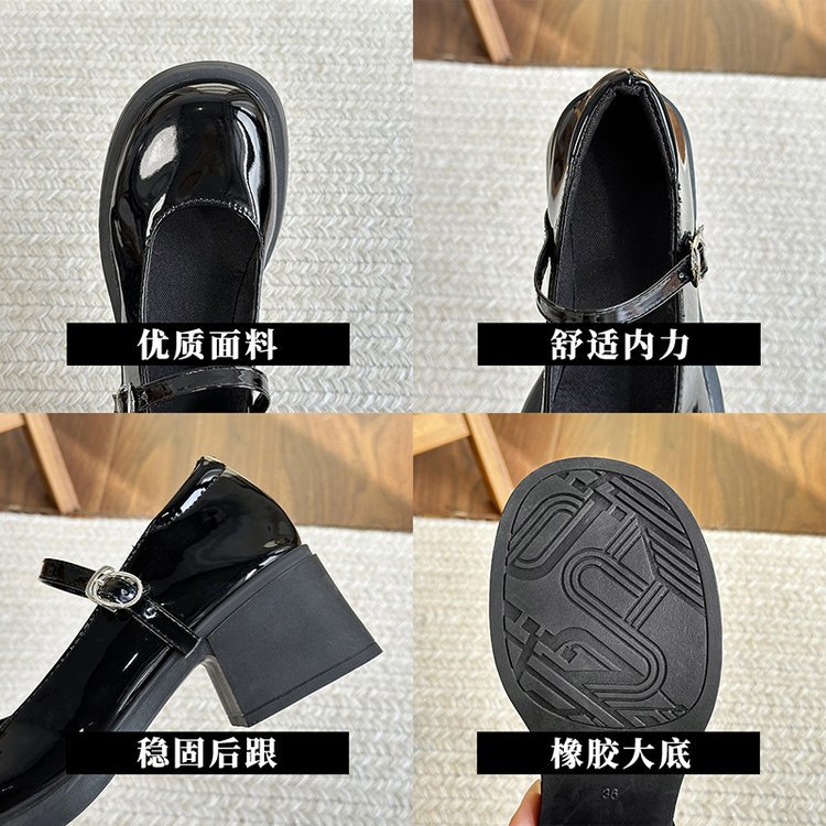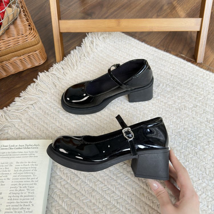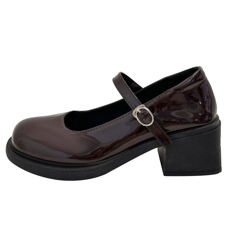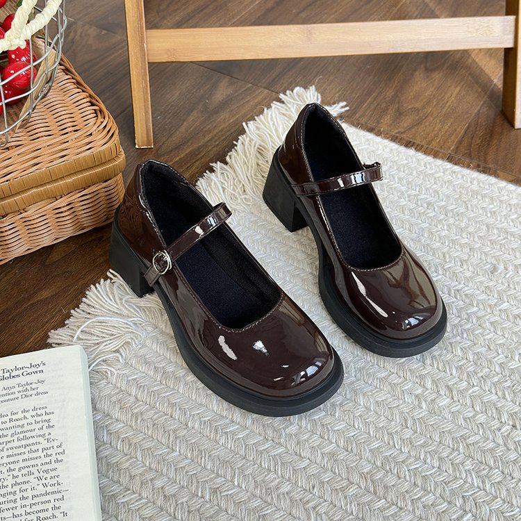 프랑스 스타일 레트로 두꺼운 힐 메리 제인 신발 여성의 2024 년 여름 새로운 도착 활 다크 브라운 라운드 발가락 영국 스타일 작은 가죽 신발스토어 가기