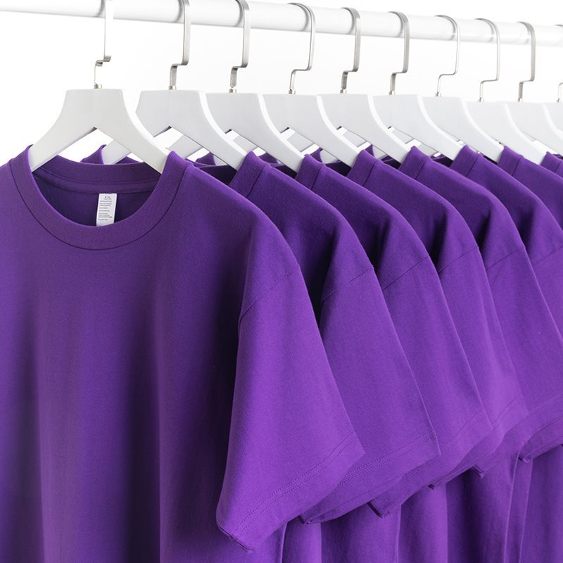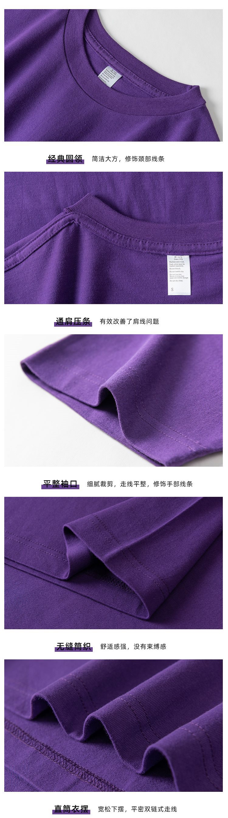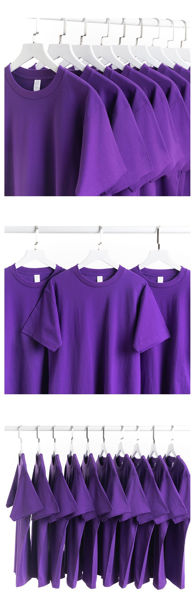 포도 보라색 250g 무거운 신장 면 부드러운 원활한 짧은 소매 티셔츠 단색 질감 남성과 여성을위한 간단한 티셔츠스토어 가기