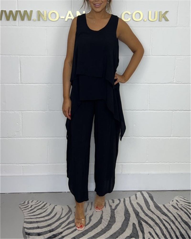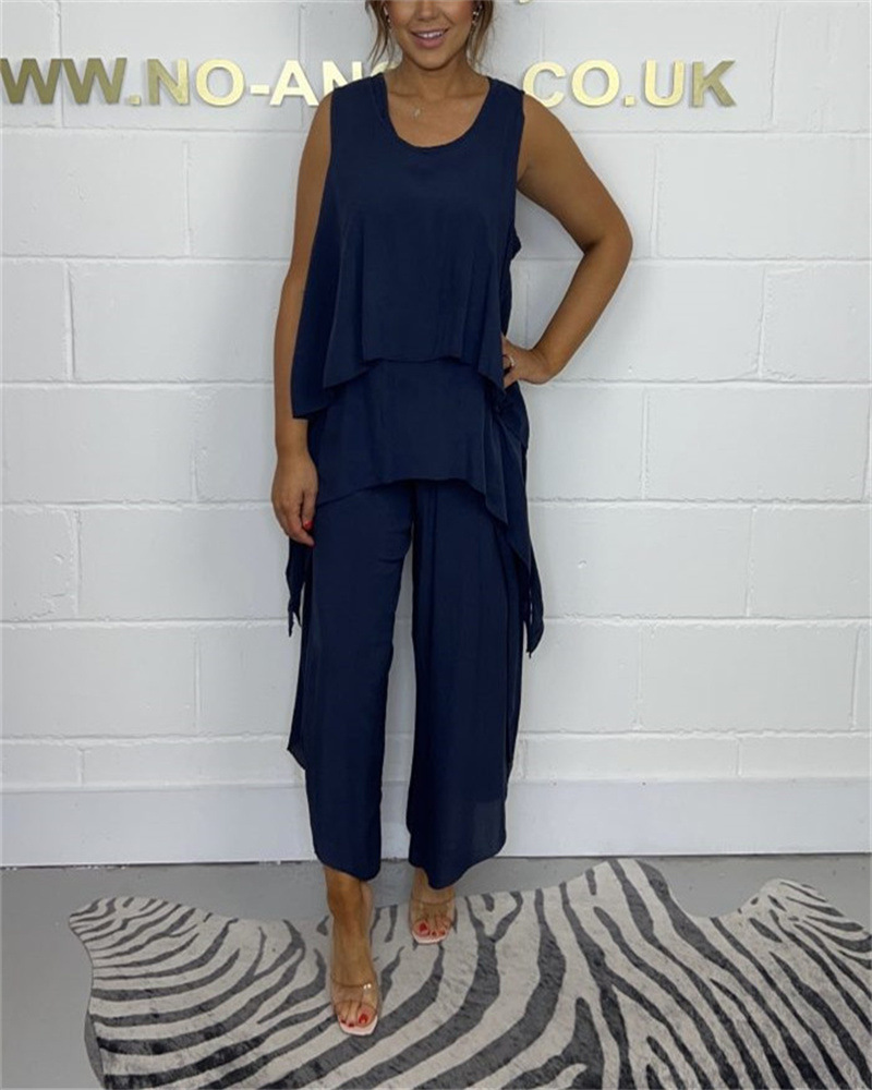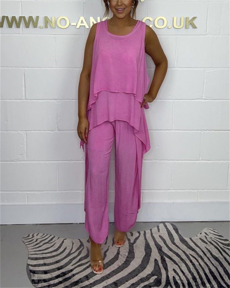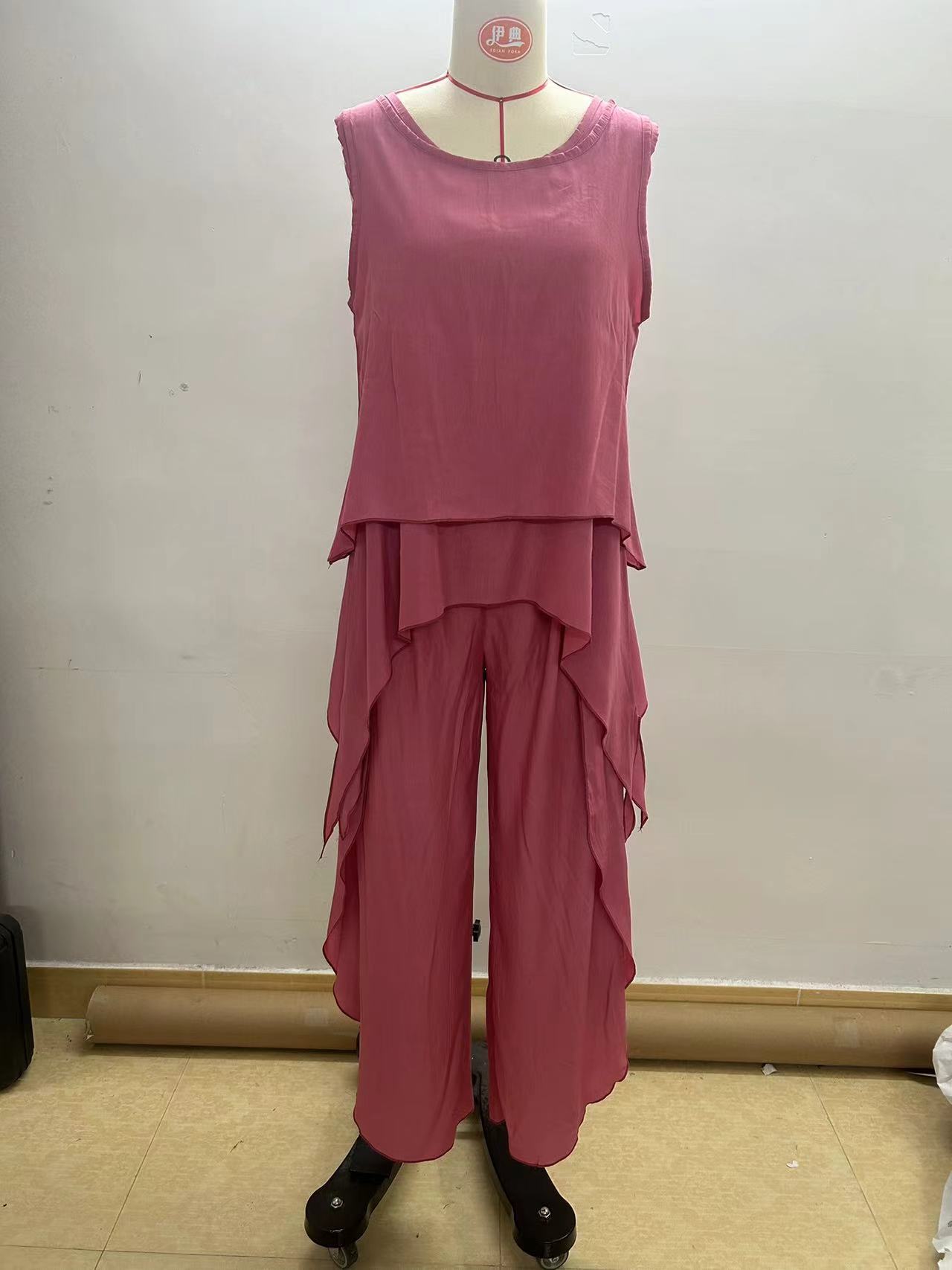 3 피스 세트 2024 아마존 독립 역 국경 폭발물 여성 패션 캐주얼 느슨한 민소매 플러스 사이즈 세트 여성