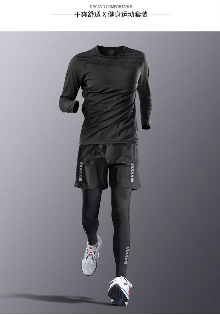 스포츠 세트 남자 여름 피트니스 옷 빠른 건조 꽉 옷 아이스 실크 반팔 농구 반바지 달리기 캐주얼 베이스 셔츠
