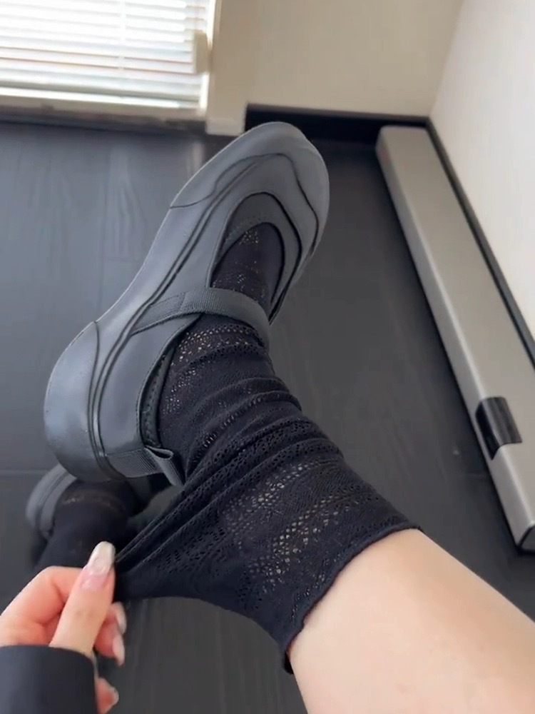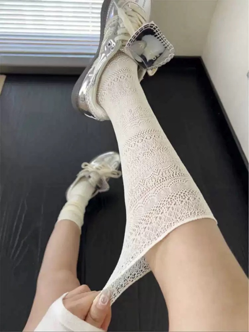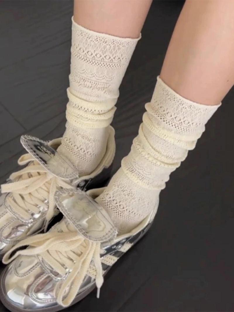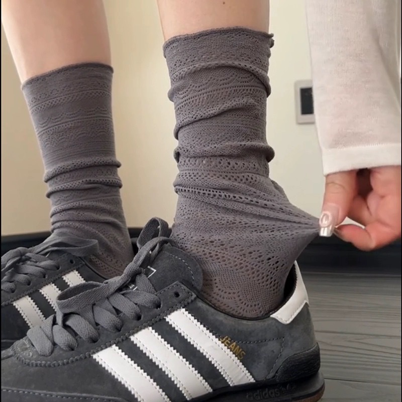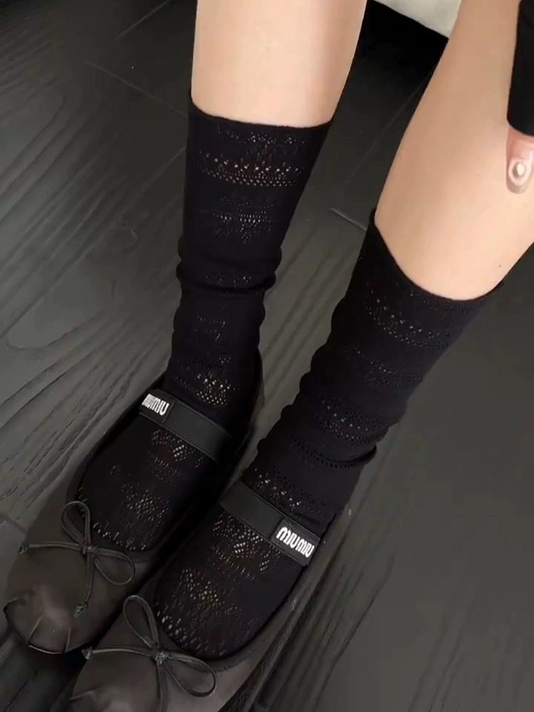 여름 얇은 단색 중공 더미 양말 레이스 종아리 양말 다리 얇은 양말 틈새 복고풍 섹시한 양말