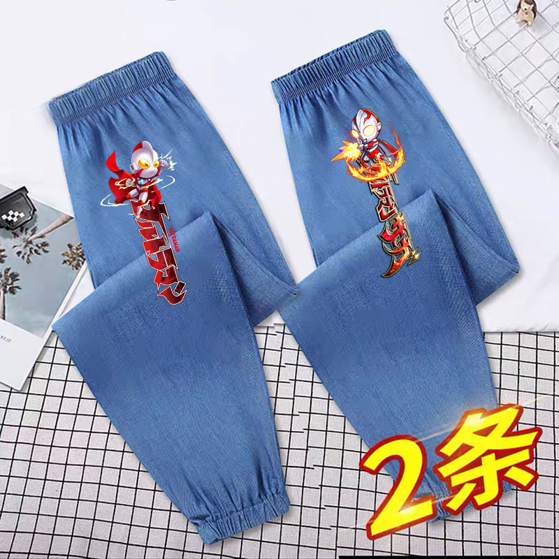 알트만 소년 여름 바지 아동복 모조 텐셀 청바지 안티-모기 바지 2024 새로운 여름 아이스 실크 바지