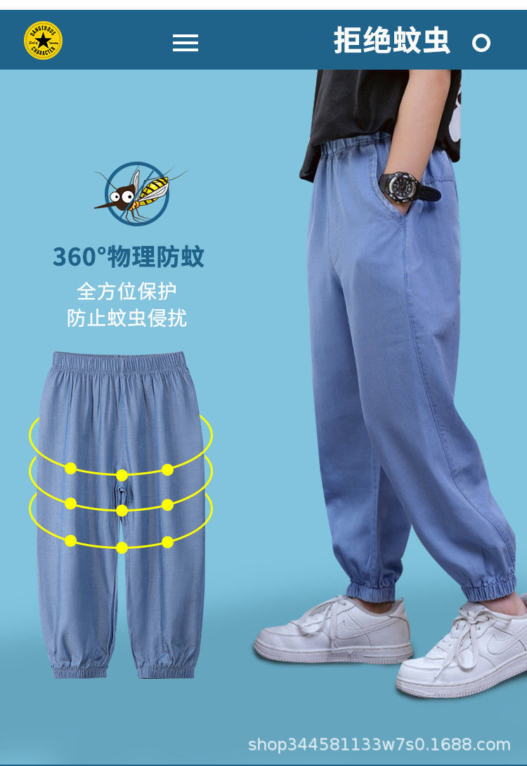 알트만 소년 여름 바지 아동복 모조 텐셀 청바지 안티-모기 바지 2024 새로운 여름 아이스 실크 바지스토어 가기