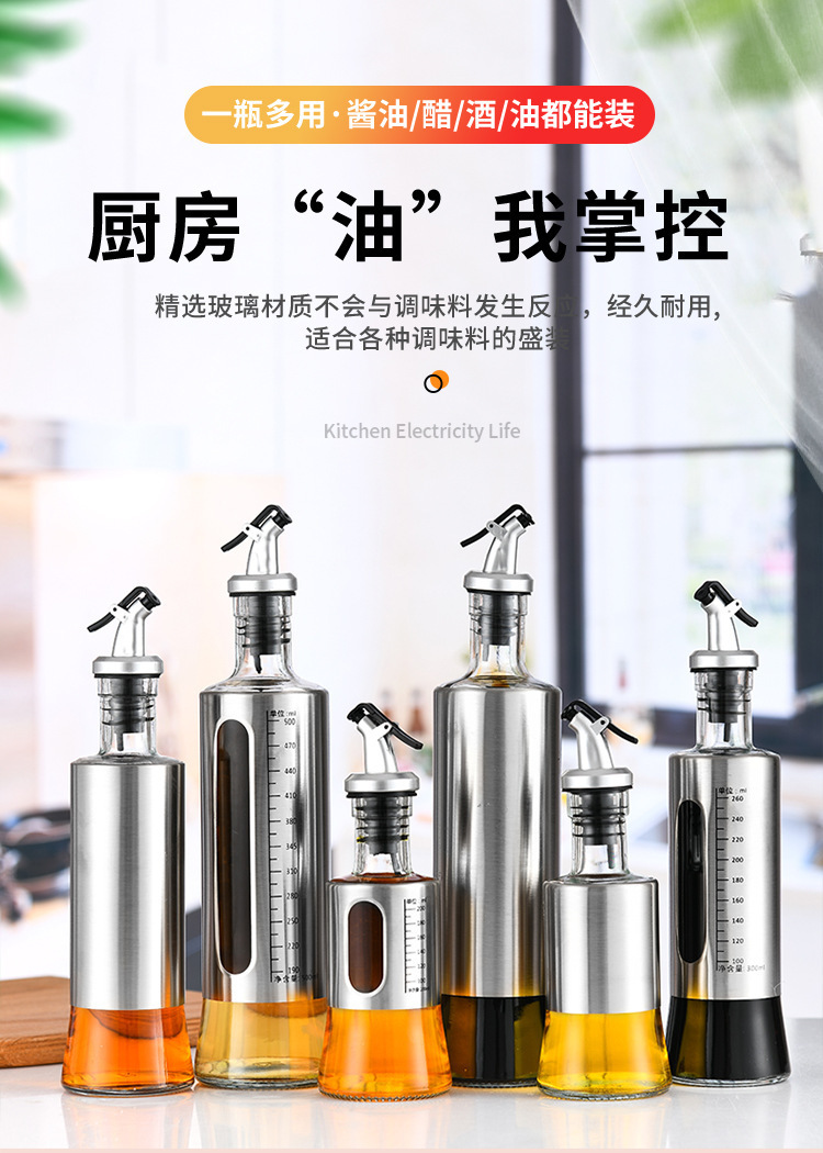 스케일 유리 누출 방지 오일 병 가정용 주방 공급 간장 식초 조미료 병 다중 사양