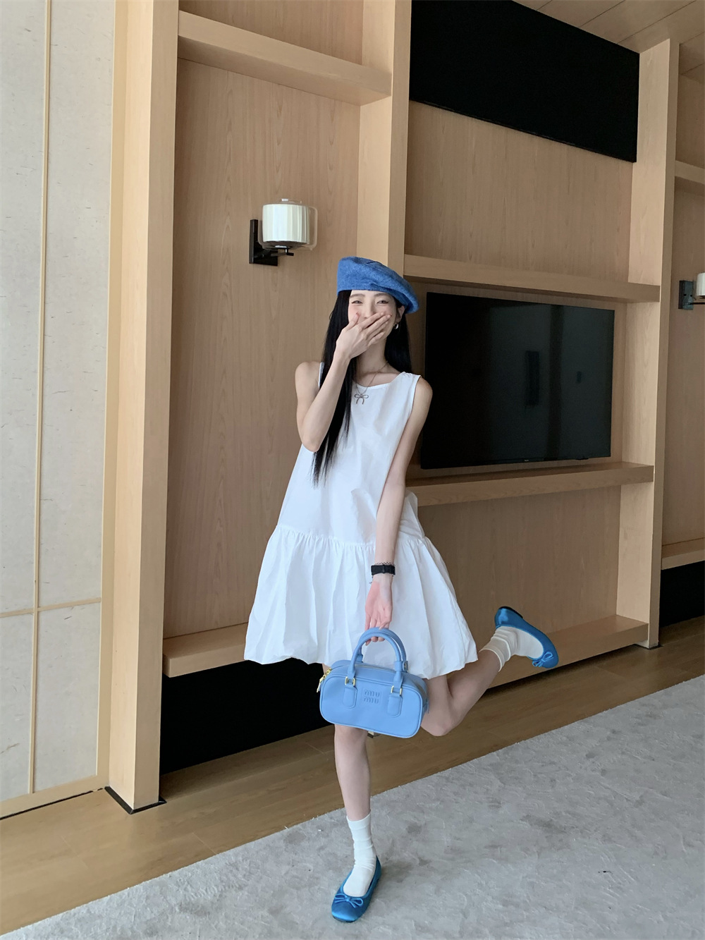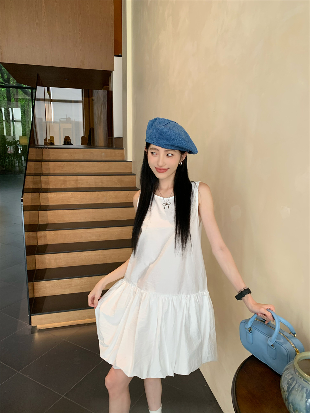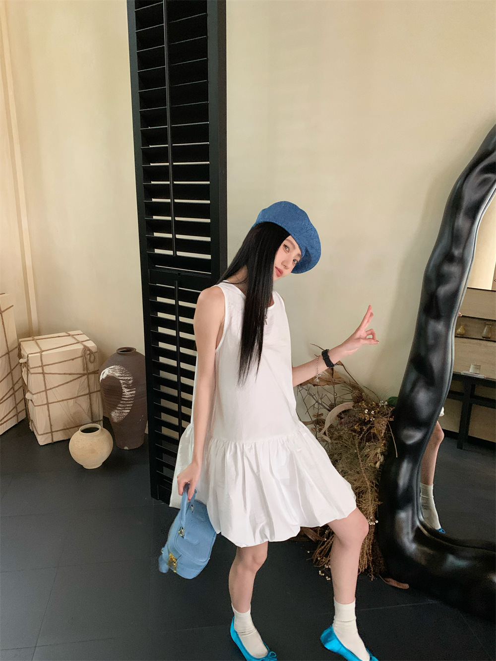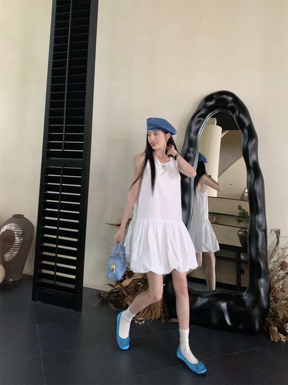리얼 샷 플라워 번 스커트 여성 여름 뉴 한국 에이지 드는웨어 조끼 느슨한 슬리밍 중간 길이 원피스 65471