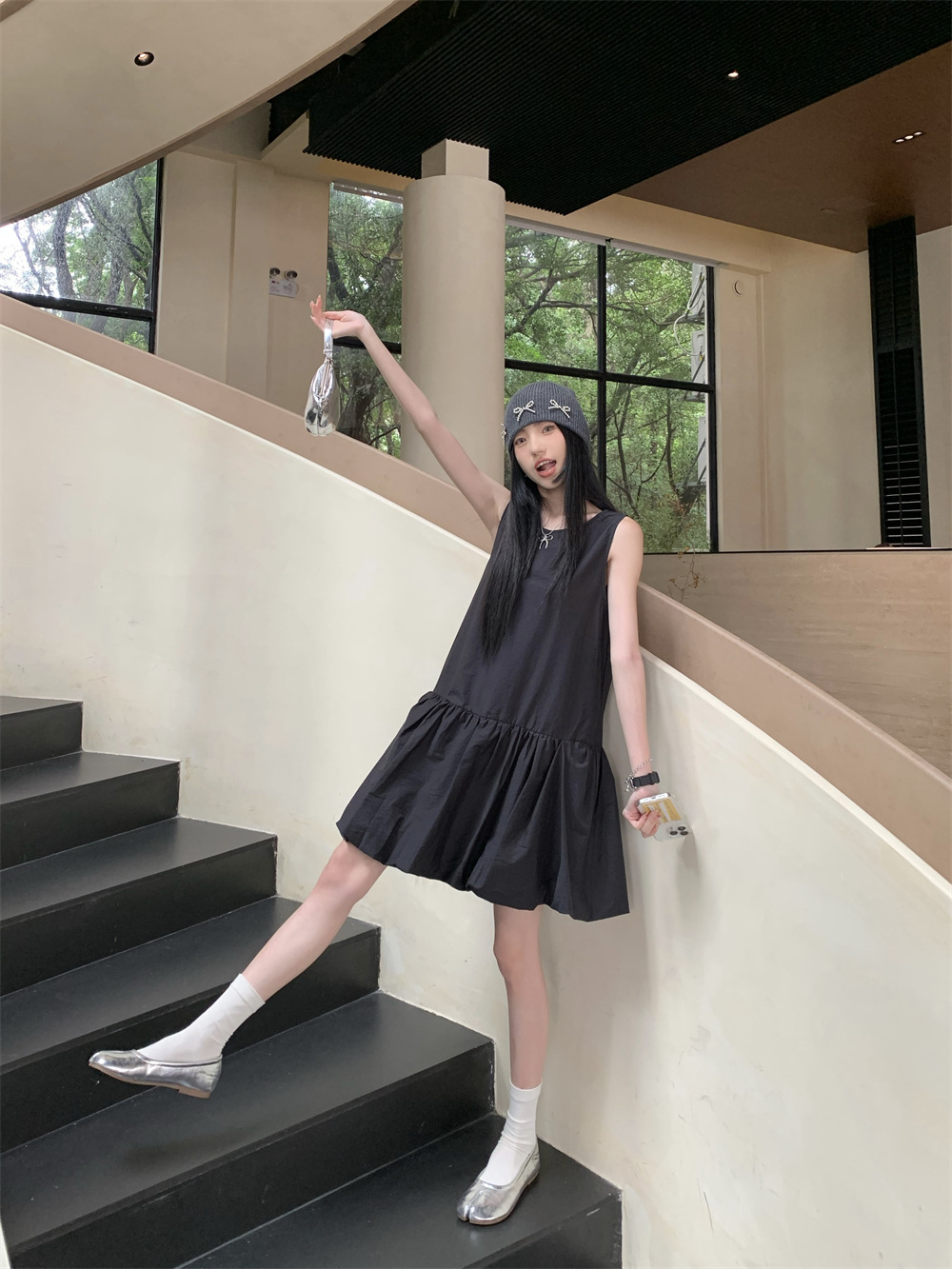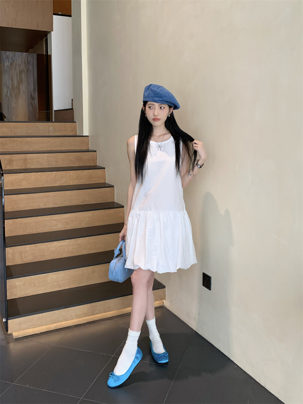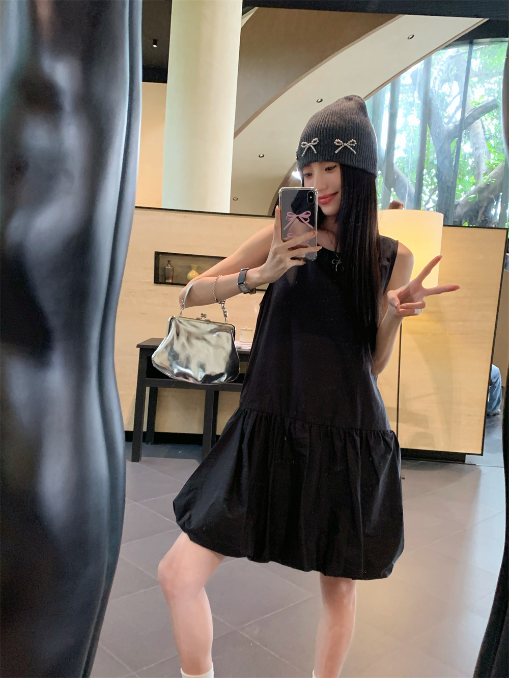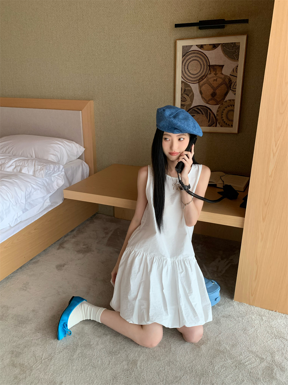 리얼 샷 플라워 번 스커트 여성 여름 뉴 한국 에이지 드는웨어 조끼 느슨한 슬리밍 중간 길이 원피스 65471