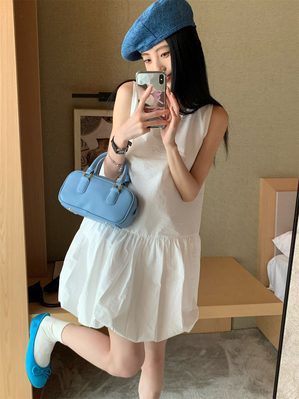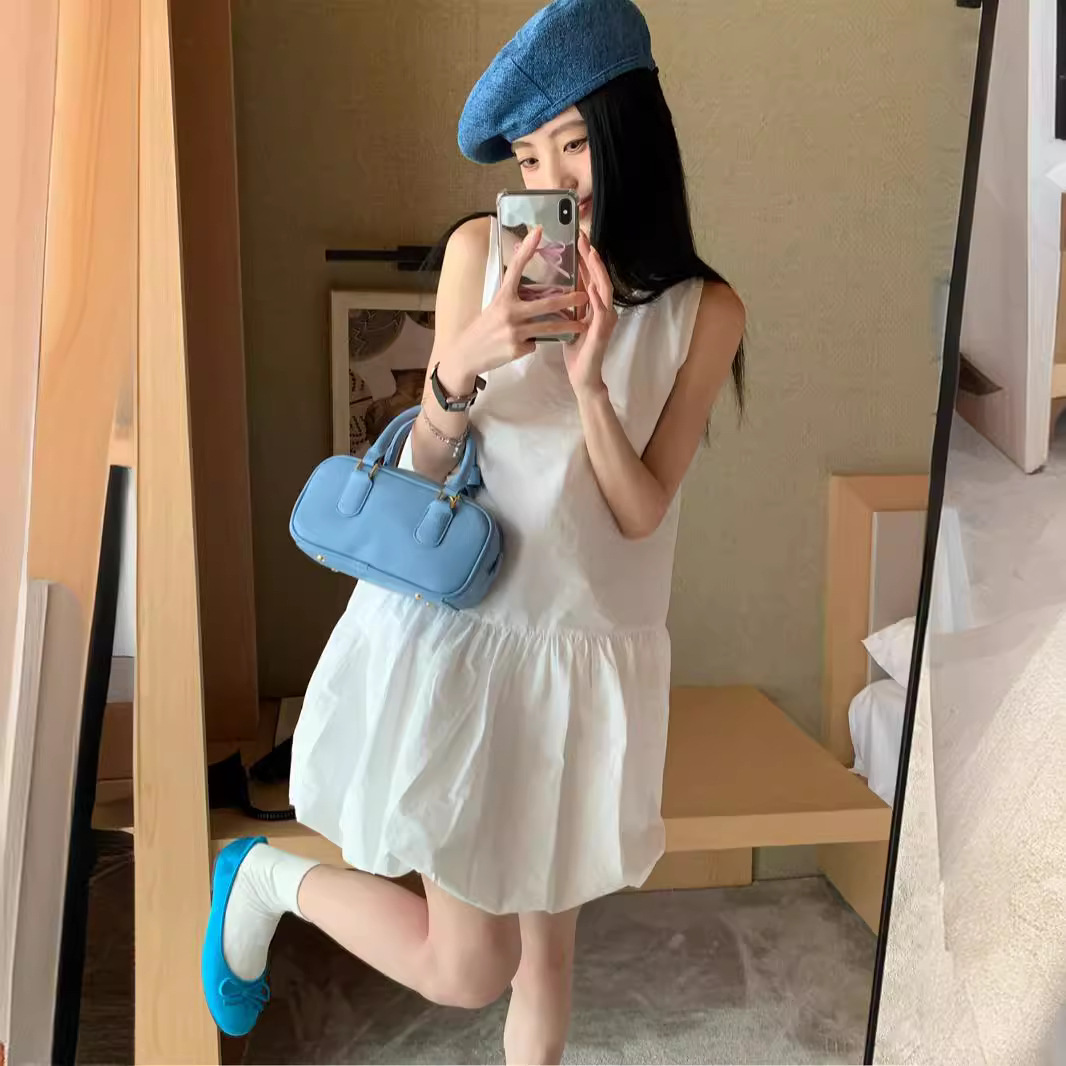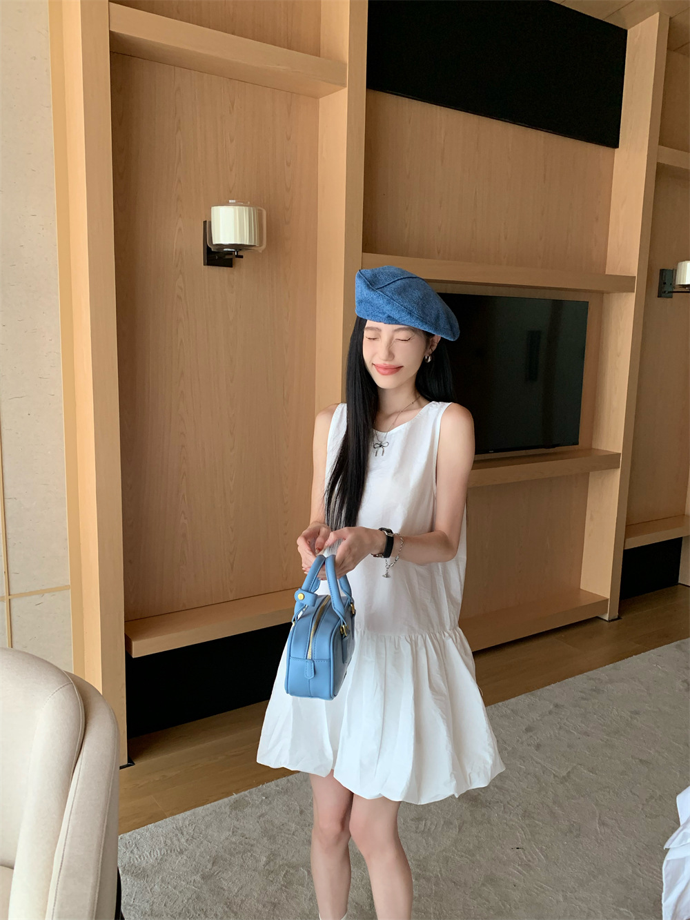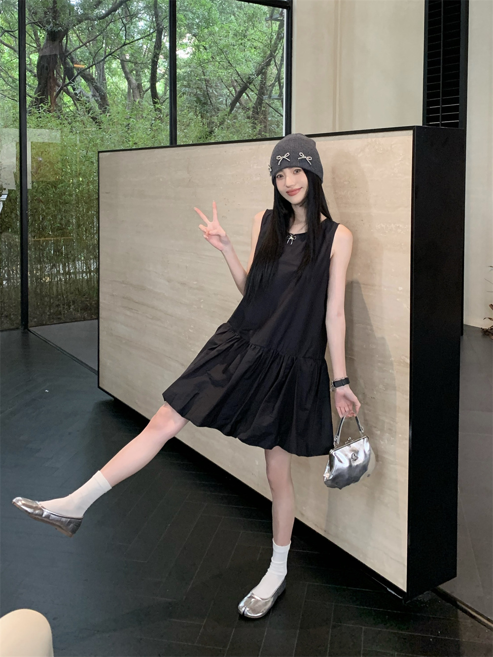 리얼 샷 플라워 번 스커트 여성 여름 뉴 한국 에이지 드는웨어 조끼 느슨한 슬리밍 중간 길이 원피스 65471