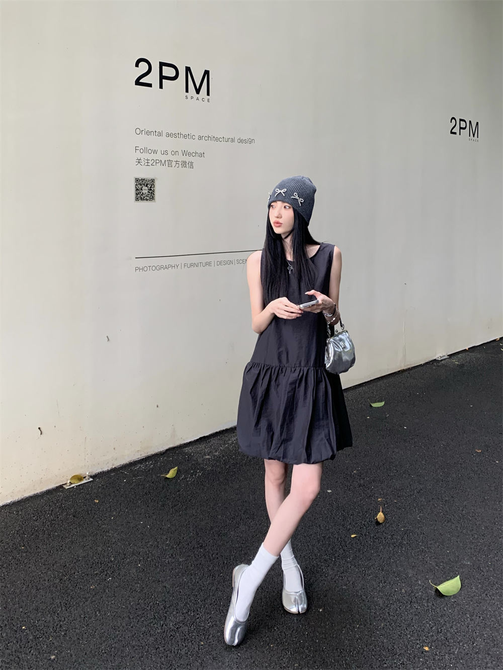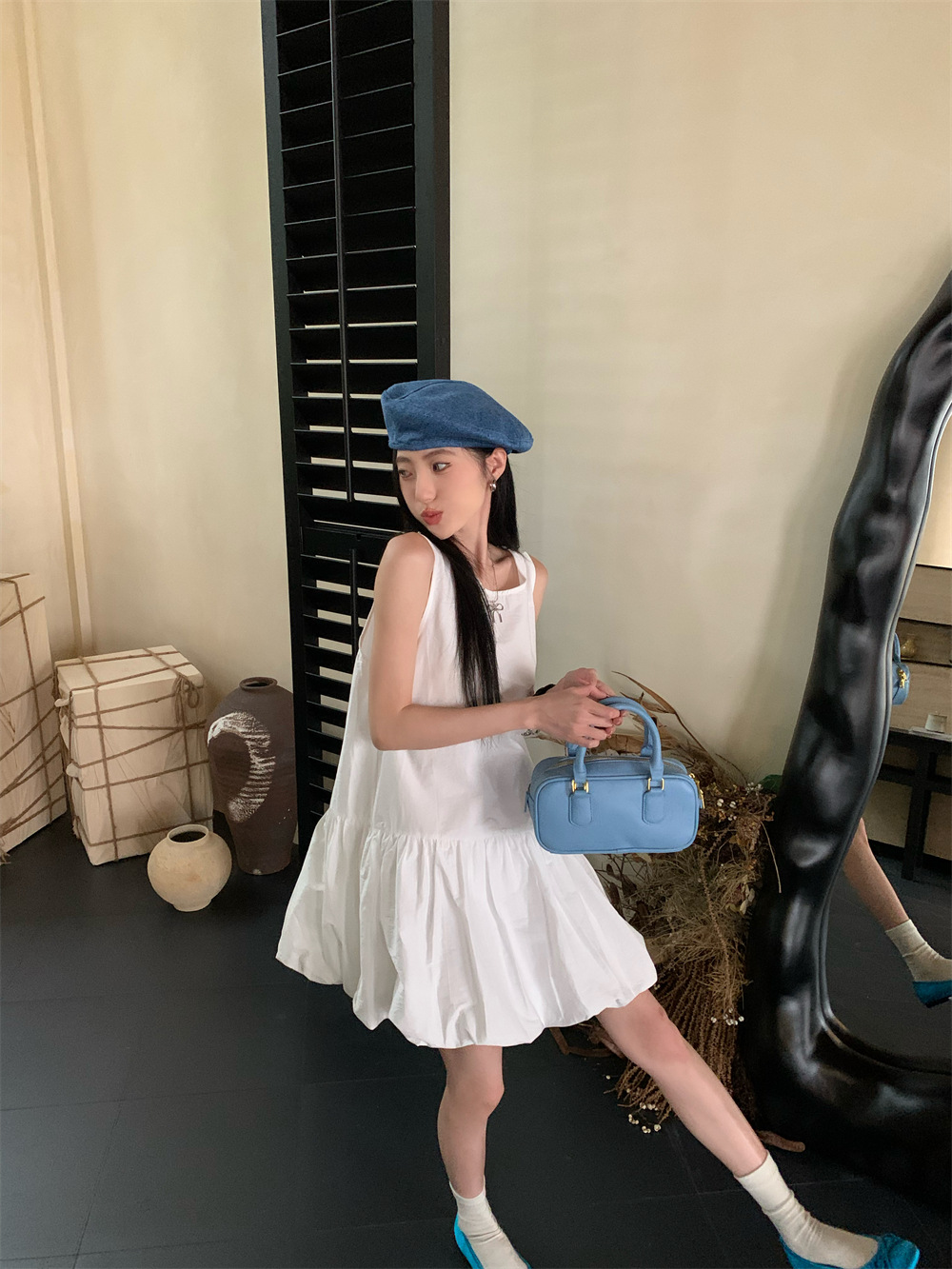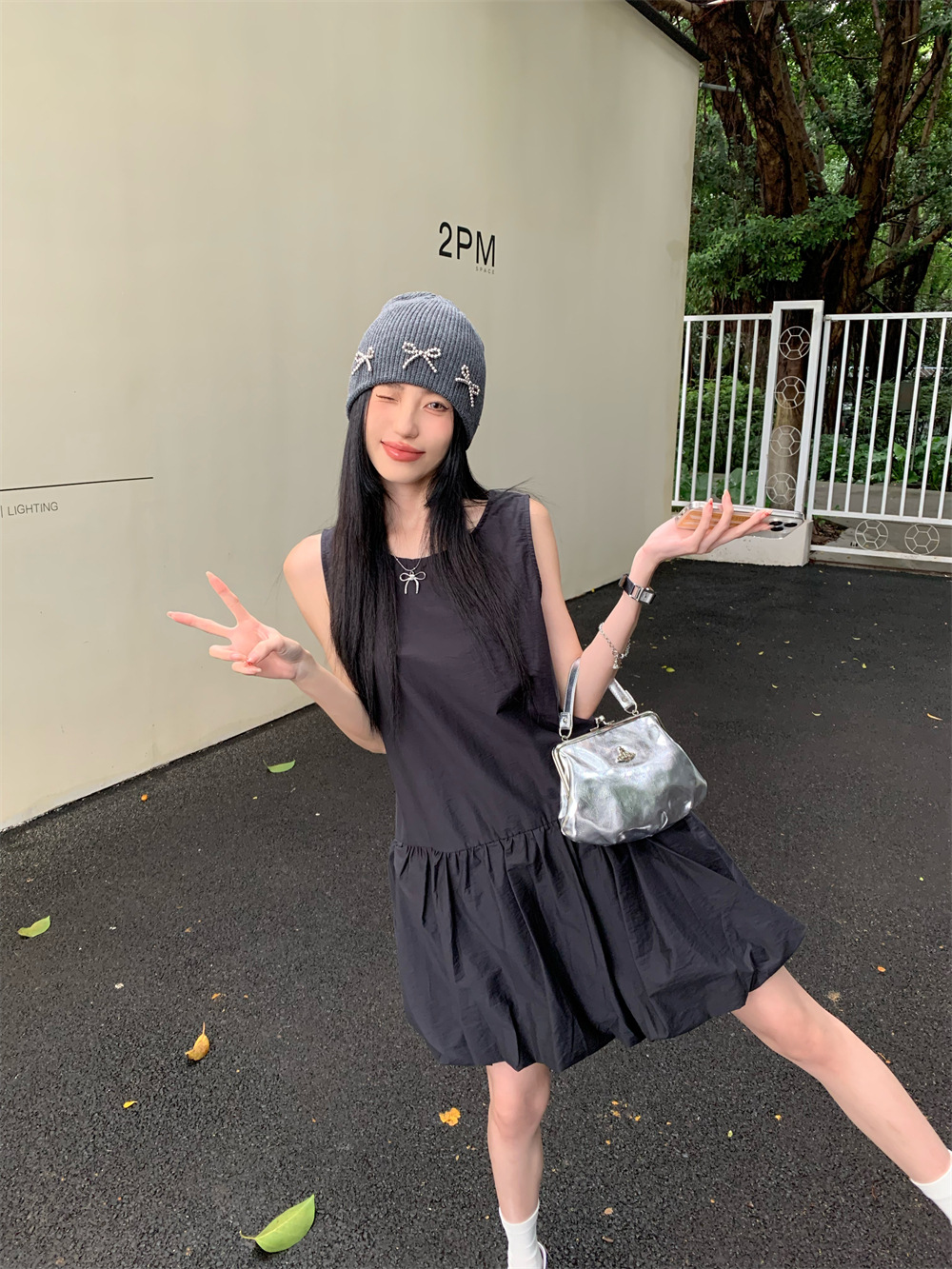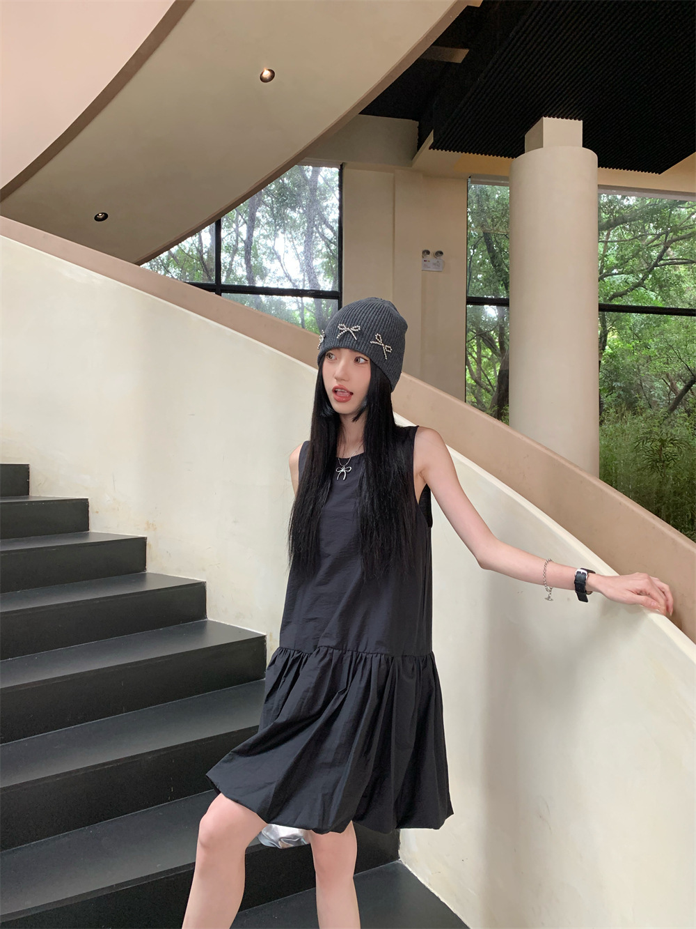 리얼 샷 플라워 번 스커트 여성 여름 뉴 한국 에이지 드는웨어 조끼 느슨한 슬리밍 중간 길이 원피스 65471