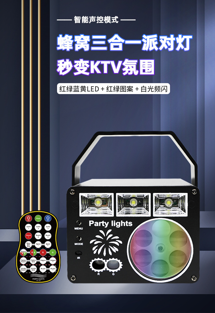 2025년 허니콤 미니 레이저 라이트 LED 음성 제어 할로윈 무대 조명 KTV 분위기 조명 크리스마스 프로젝션 라이트