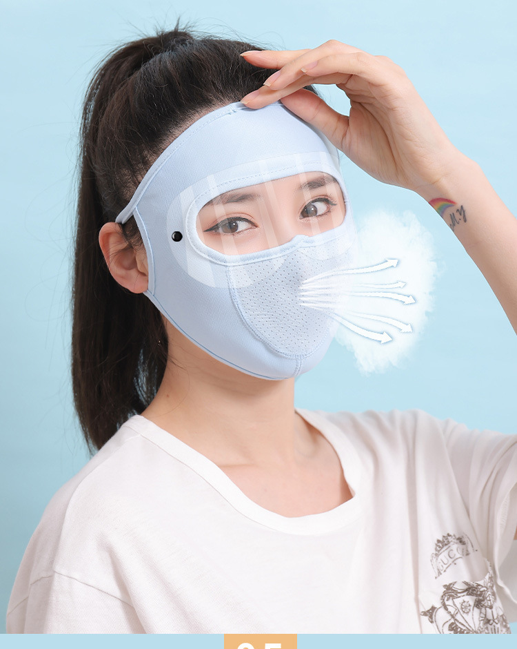 흰색 렌즈 자외선 차단제 마스크 여름 여성 전체 얼굴 야외 승마 차양 빛 방진 통기성 얼음 실크 얇은