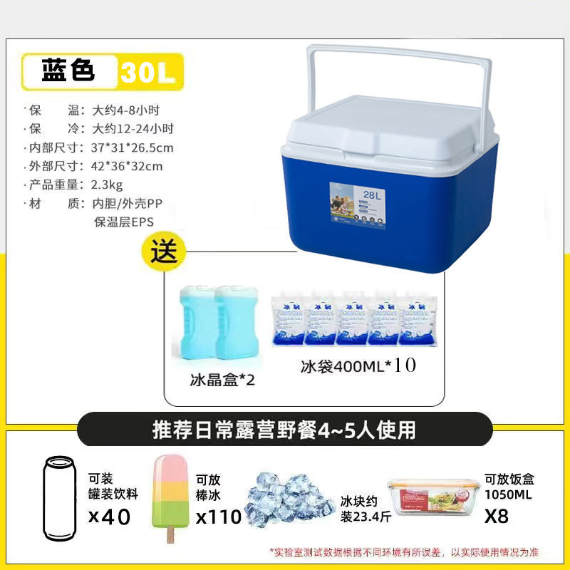 • [클래식 블루], 30 리터 [아이스 팩 10 개 및 아이스 플레이트 2 개]]