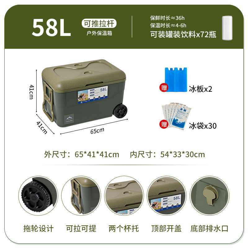 • [포레스트 그린], 바퀴가 달린 58 리터 [얼음 팩 30 개 · 얼음판 2 개]