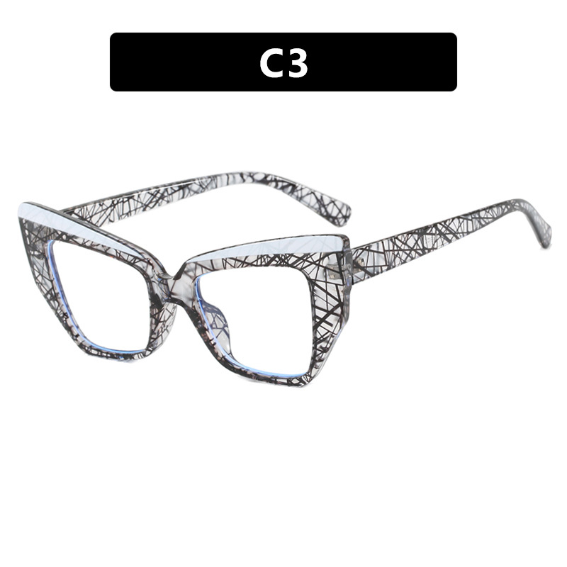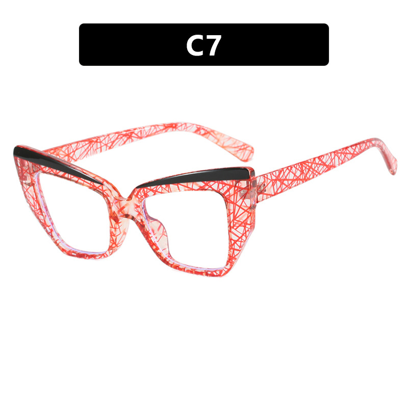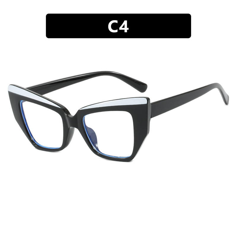 고양이 눈 대형 프레임 안경 프레임 유럽과 미국의 독특한 대비 인 플랫 미러 TR90 안티 블루 라이트 컬러 접합 패션 안경 프레임