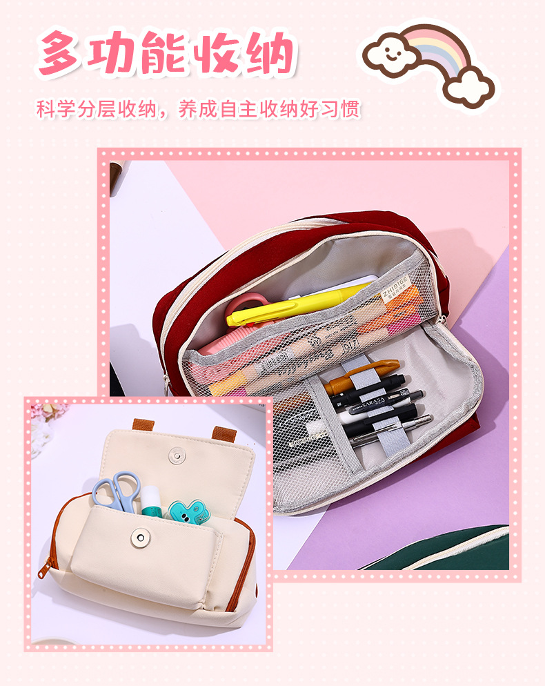 초등학생 필통, 여아용 고급스러운 대용량 얼룩 방지 필통, 중학생용 심플 문구 가방 도매스토어 가기