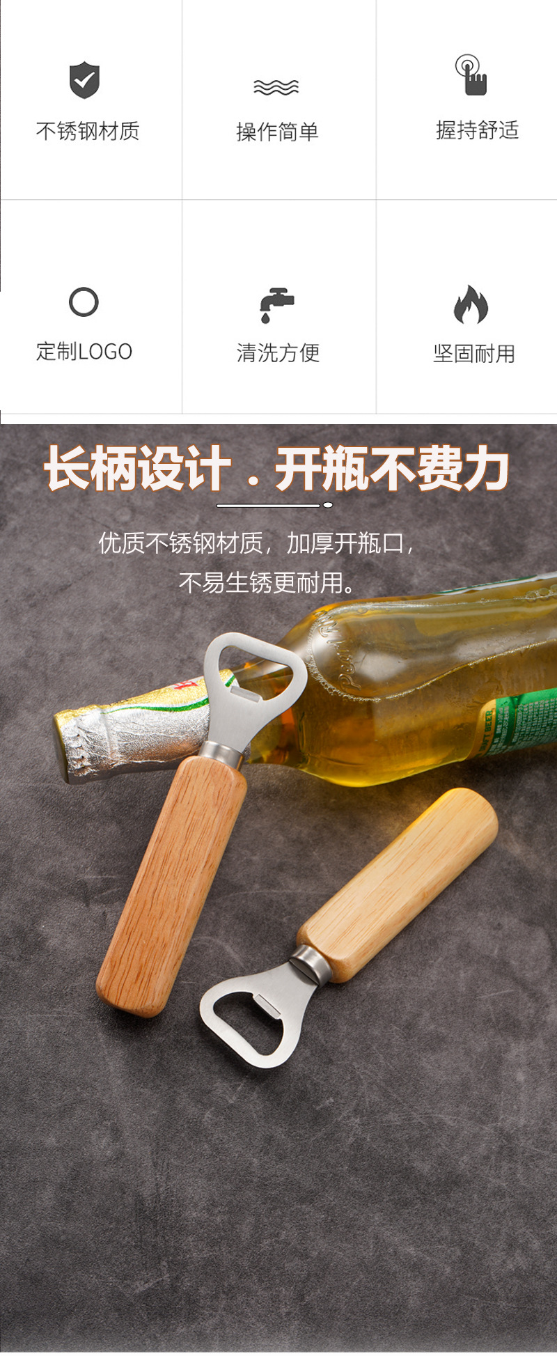 • 나무 손잡이 짧은 머리 병 오프너