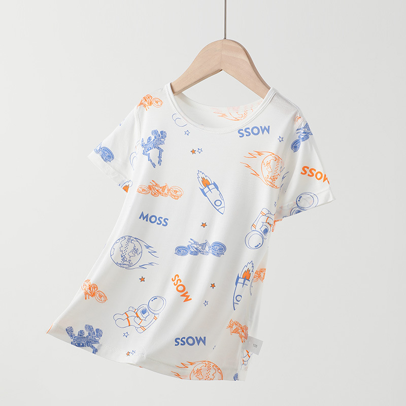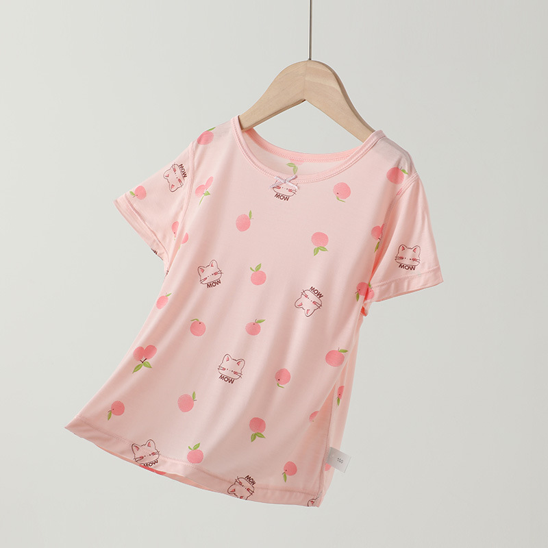 Xia Xin Tencel Modal Bonless Boys and Girls 반팔 티셔츠 여름 아기 반팔베이스 셔츠 홈 파자마스토어 가기