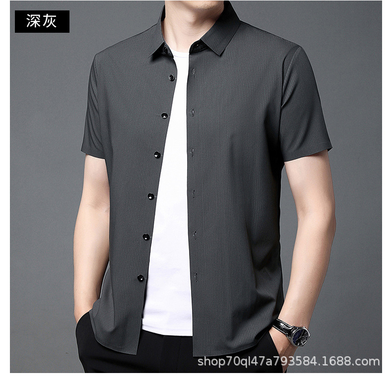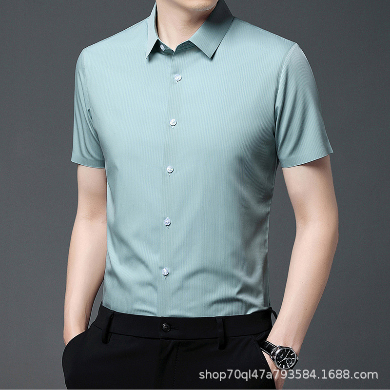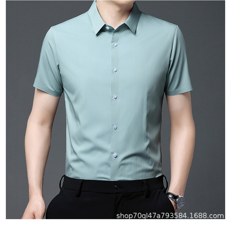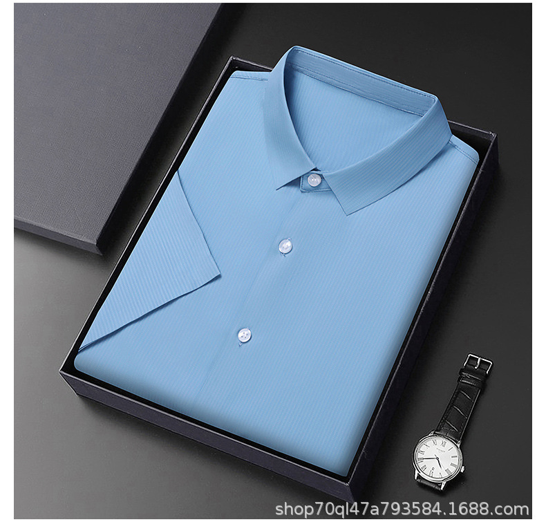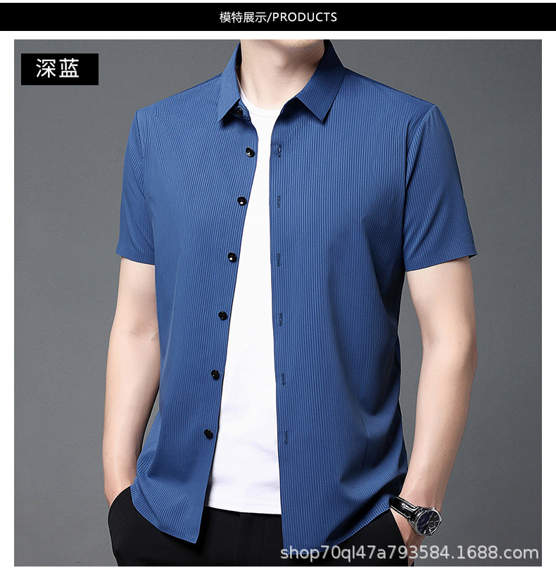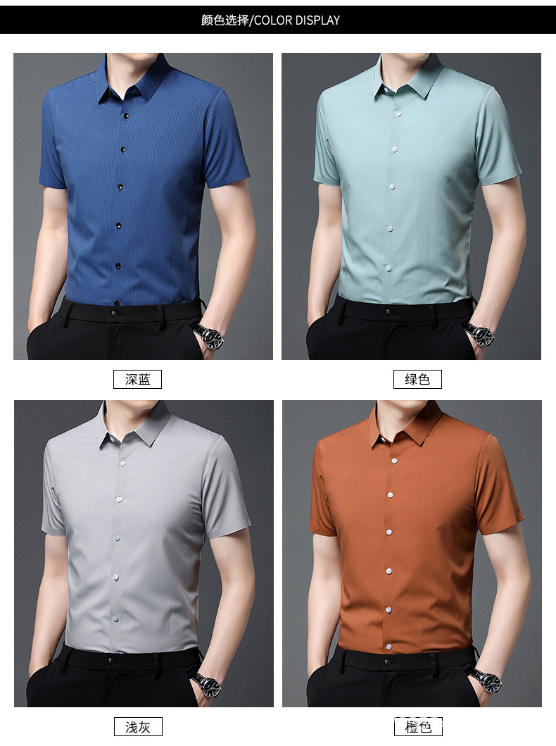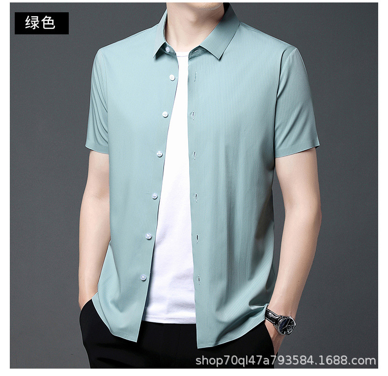 2023夏季新款韩版短袖衬衣男开衫纯色POLO领百搭减龄潮流气质上衣
