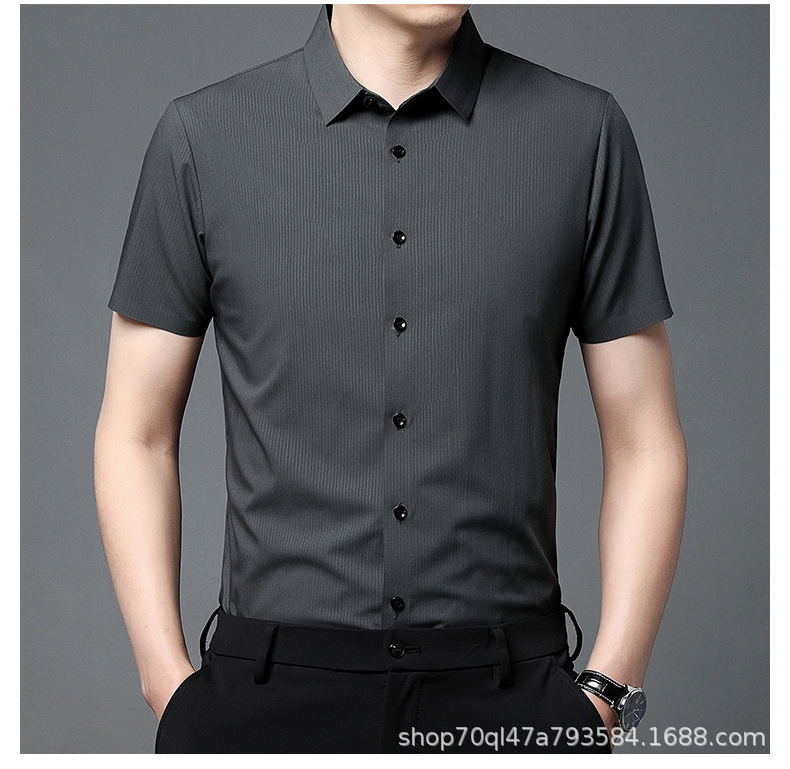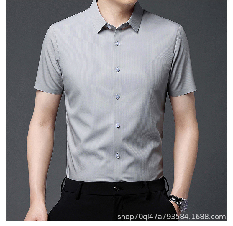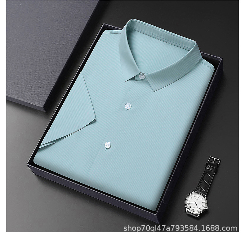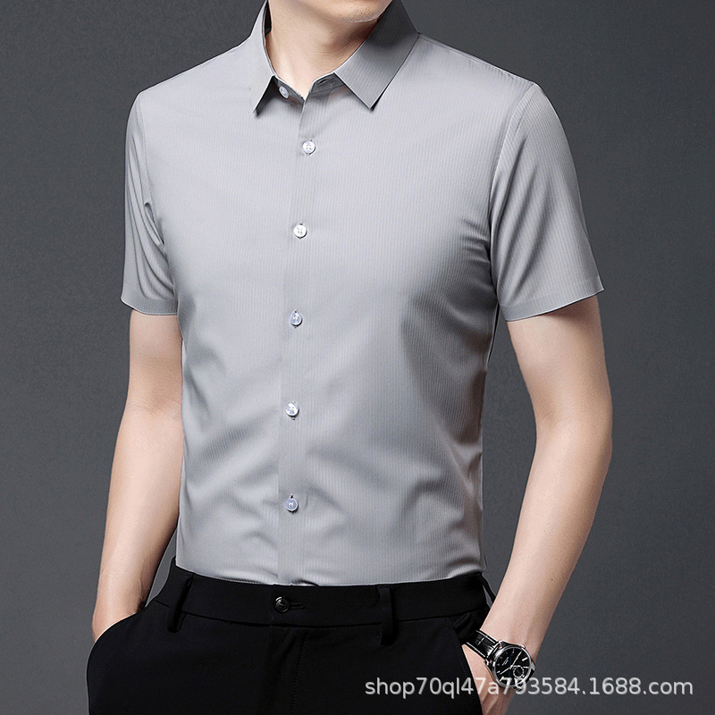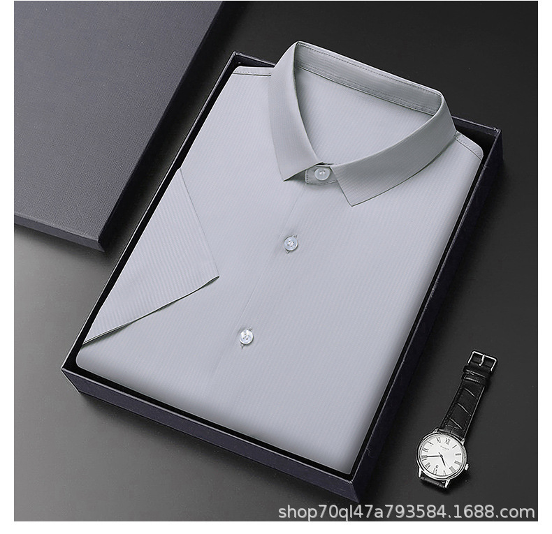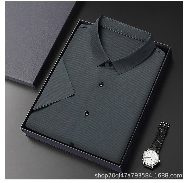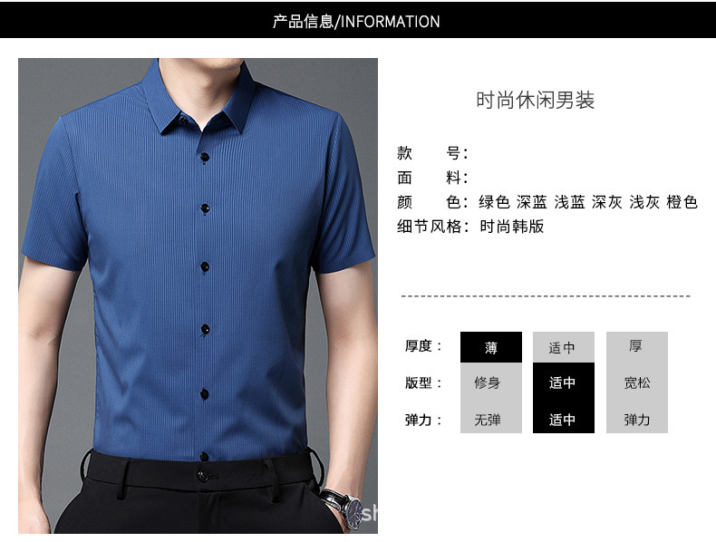 2023夏季新款韩版短袖衬衣男开衫纯色POLO领百搭减龄潮流气质上衣