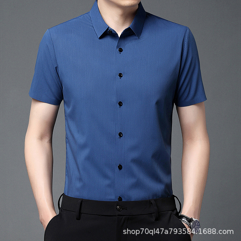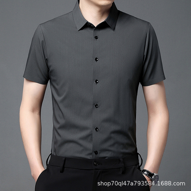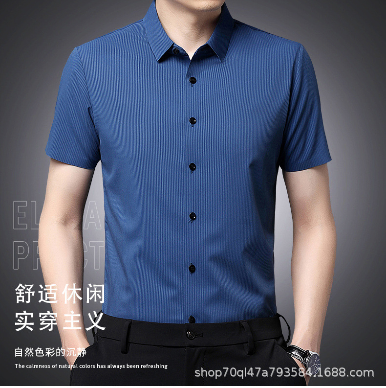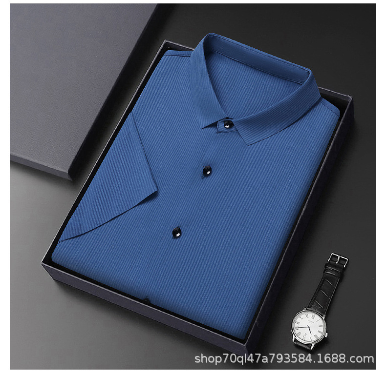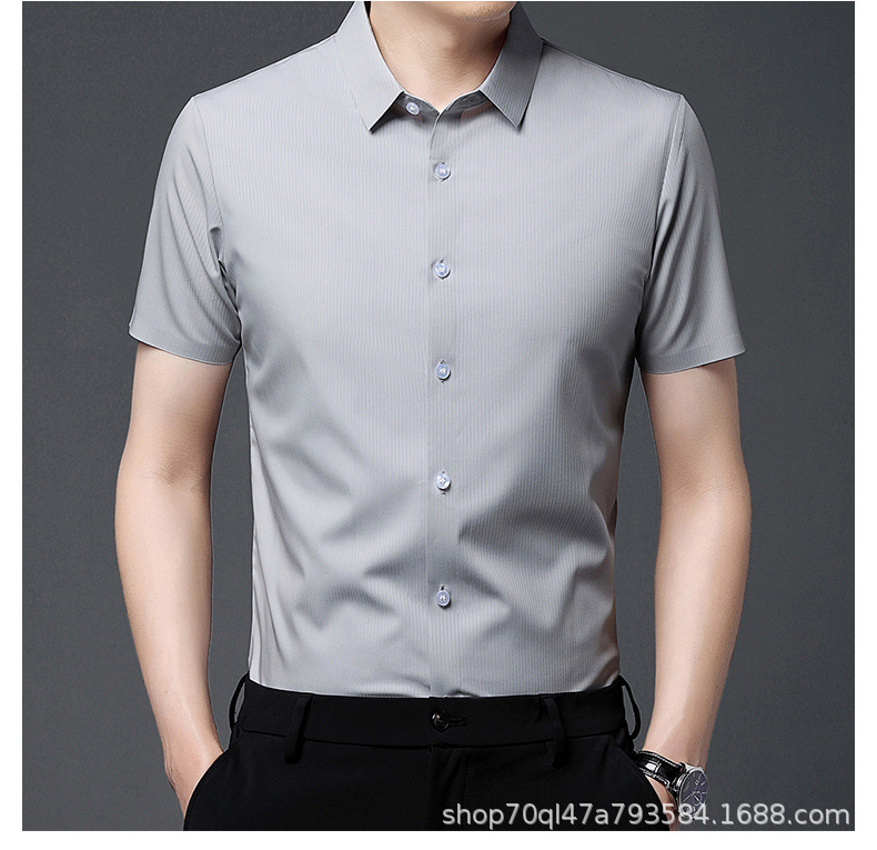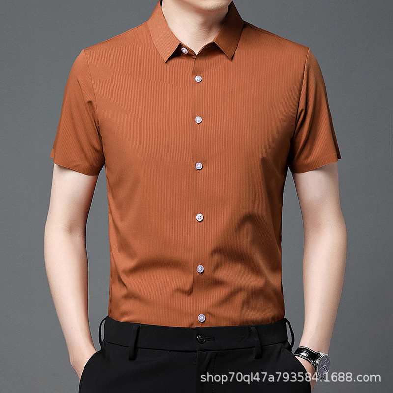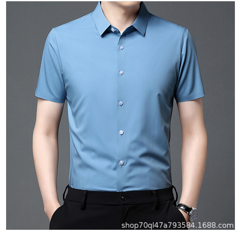2023夏季新款韩版短袖衬衣男开衫纯色POLO领百搭减龄潮流气质上衣