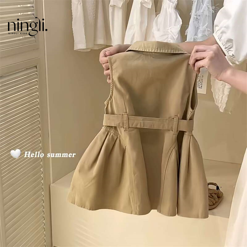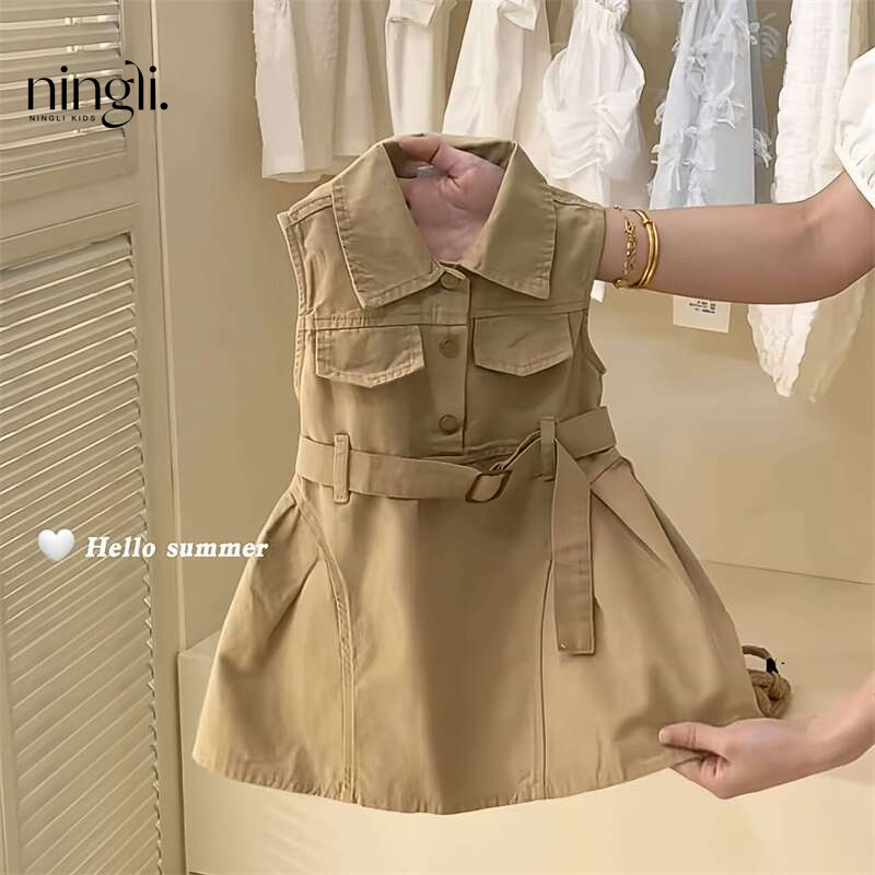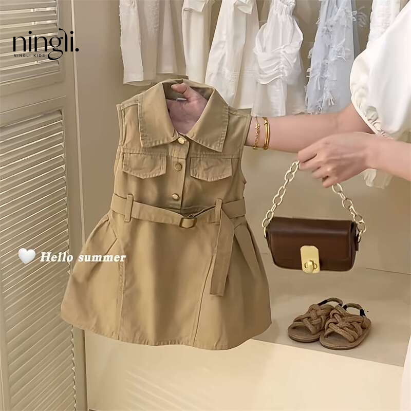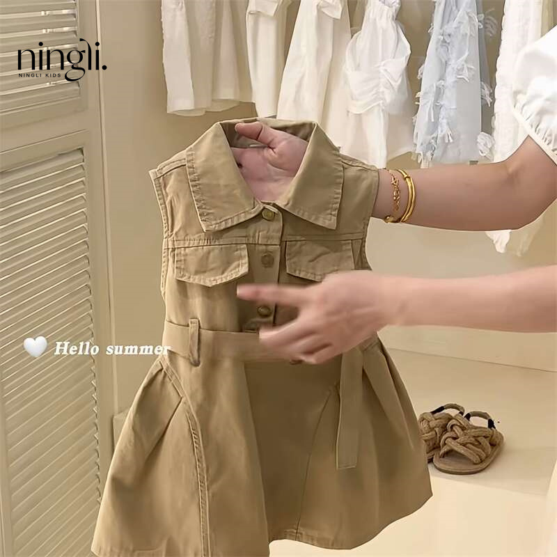 라임 한국 아동복 여름 새 여아 민소매 원피스 아기 패션 디자인 센스 작업복 스커트 스커트 스커트스토어 가기
