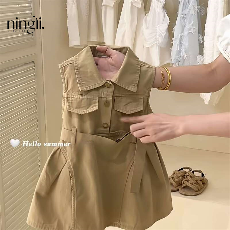 라임 한국 아동복 여름 새 여아 민소매 원피스 아기 패션 디자인 센스 작업복 스커트 스커트 스커트