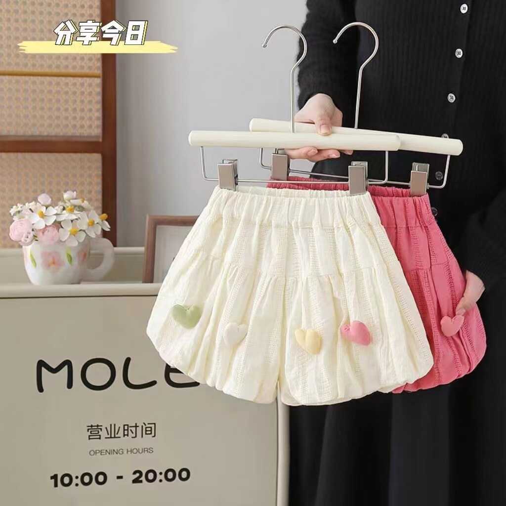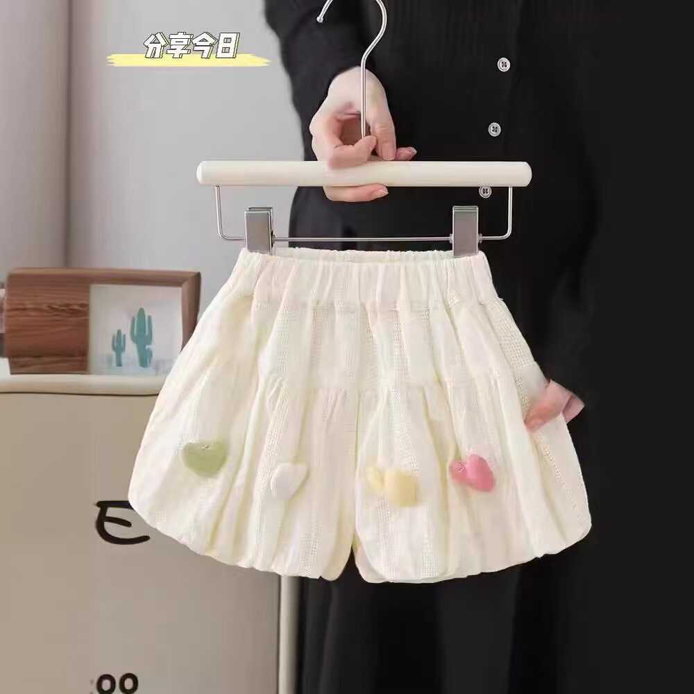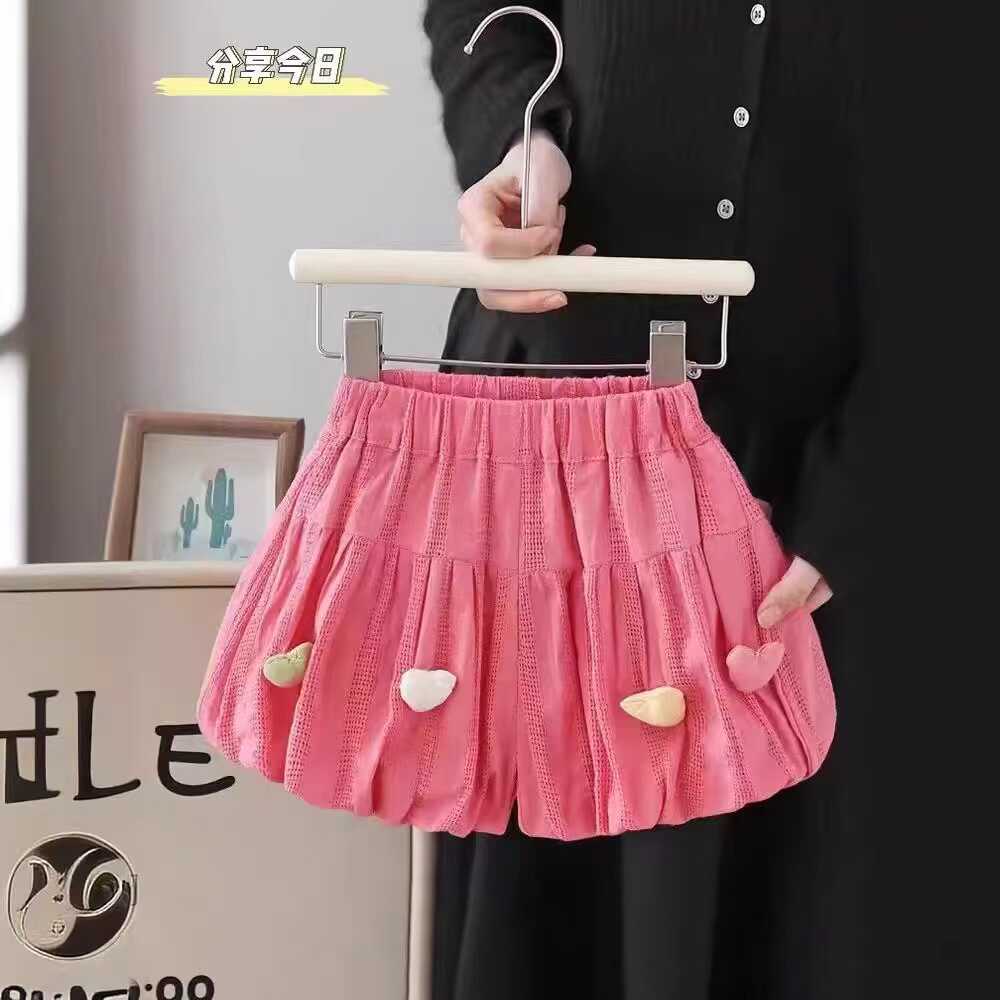 여자 반바지 2025 새로운 아기 소녀 여름 얇은 겉옷 느슨한 사랑 꽃 팬티 어린이 여름 반바지스토어 가기