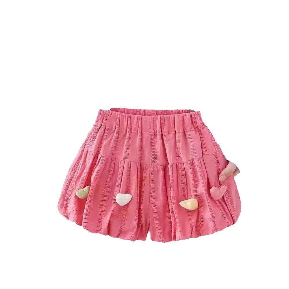 여자 반바지 2025 새로운 아기 소녀 여름 얇은 겉옷 느슨한 사랑 꽃 팬티 어린이 여름 반바지