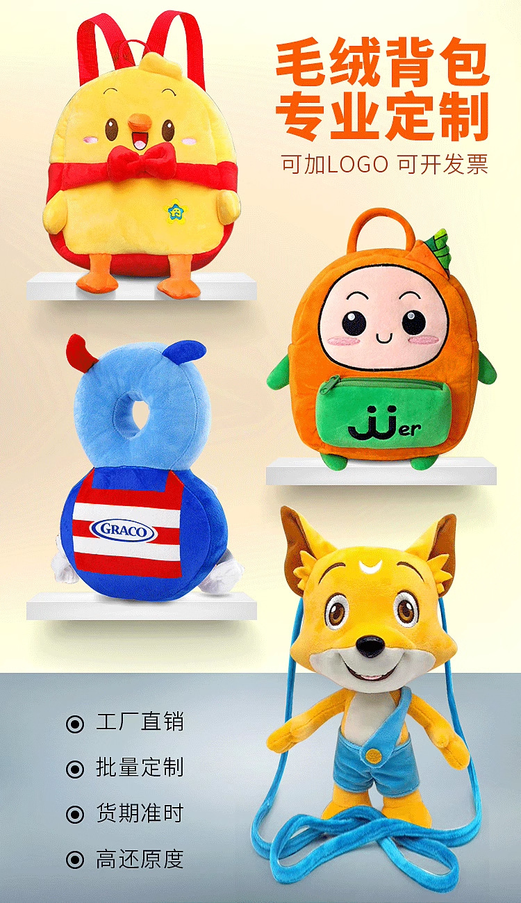 유치원 어린이를 위한 맞춤형 플러시 가방, 작은 책가방 및 배낭, 맞춤형 사진 및 샘플, 맞춤형 인쇄된 로고 텍스트스토어 가기