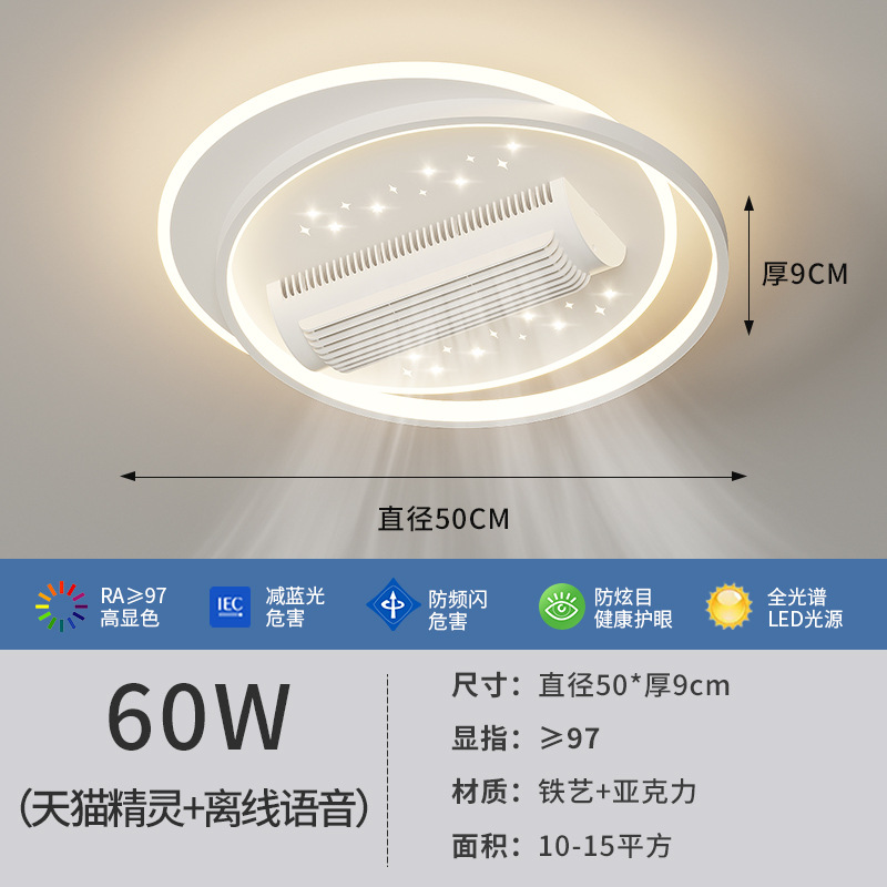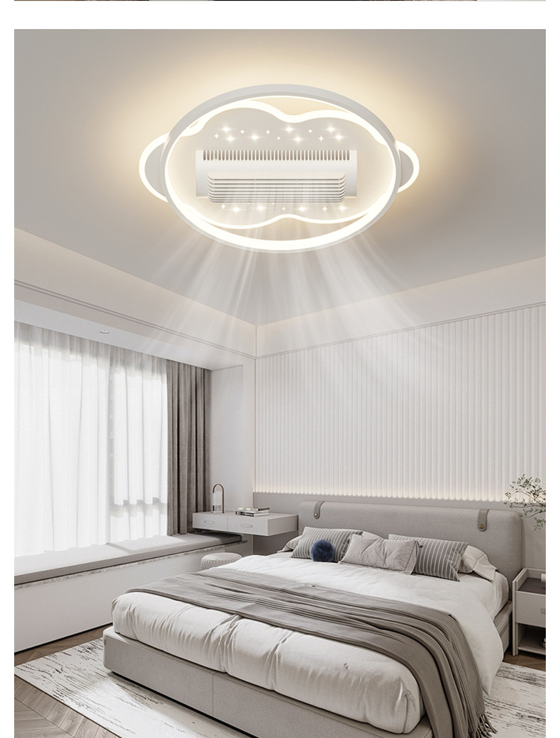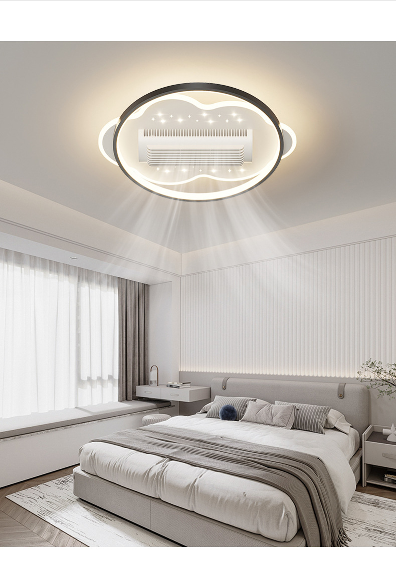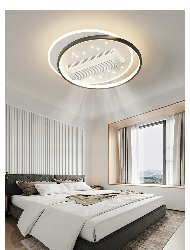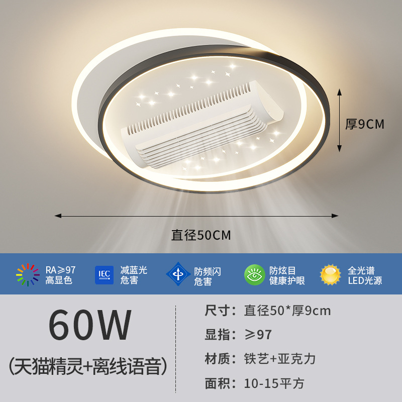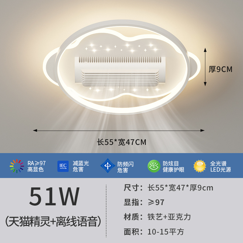 전체 스펙트럼 블레이드리스 팬 램프 거실 새로운 팬 램프 팬 블레이드리스 크리 에이 티브 스마트 침실 레스토랑 램프 중산 램프