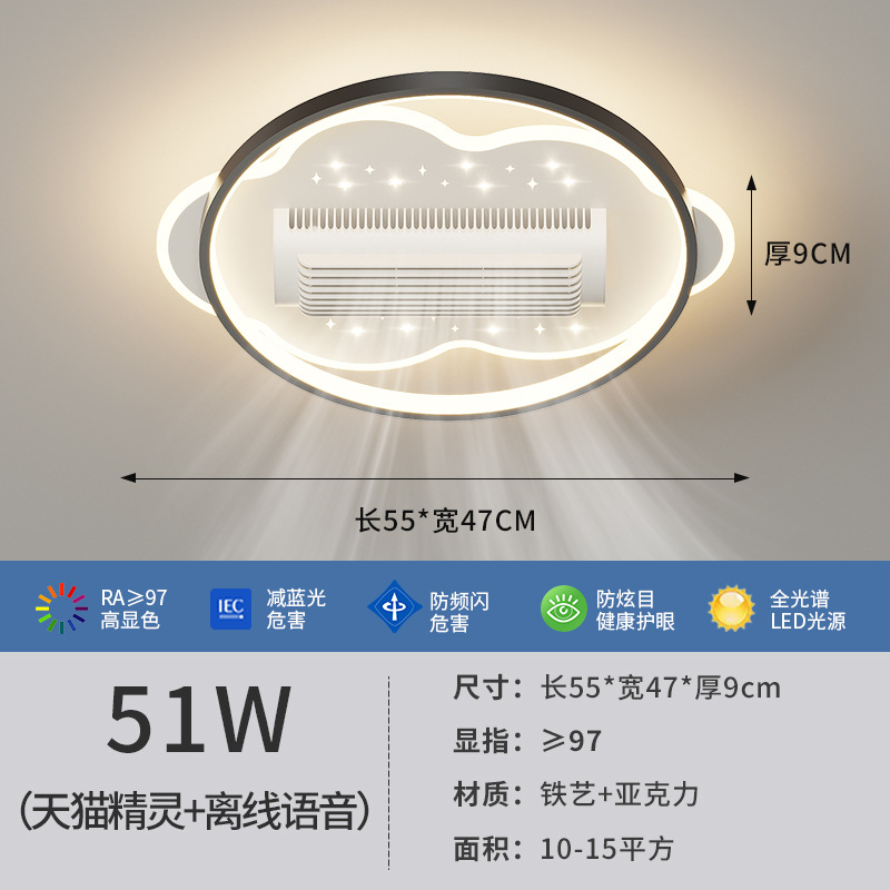 전체 스펙트럼 블레이드리스 팬 램프 거실 새로운 팬 램프 팬 블레이드리스 크리 에이 티브 스마트 침실 레스토랑 램프 중산 램프스토어 가기