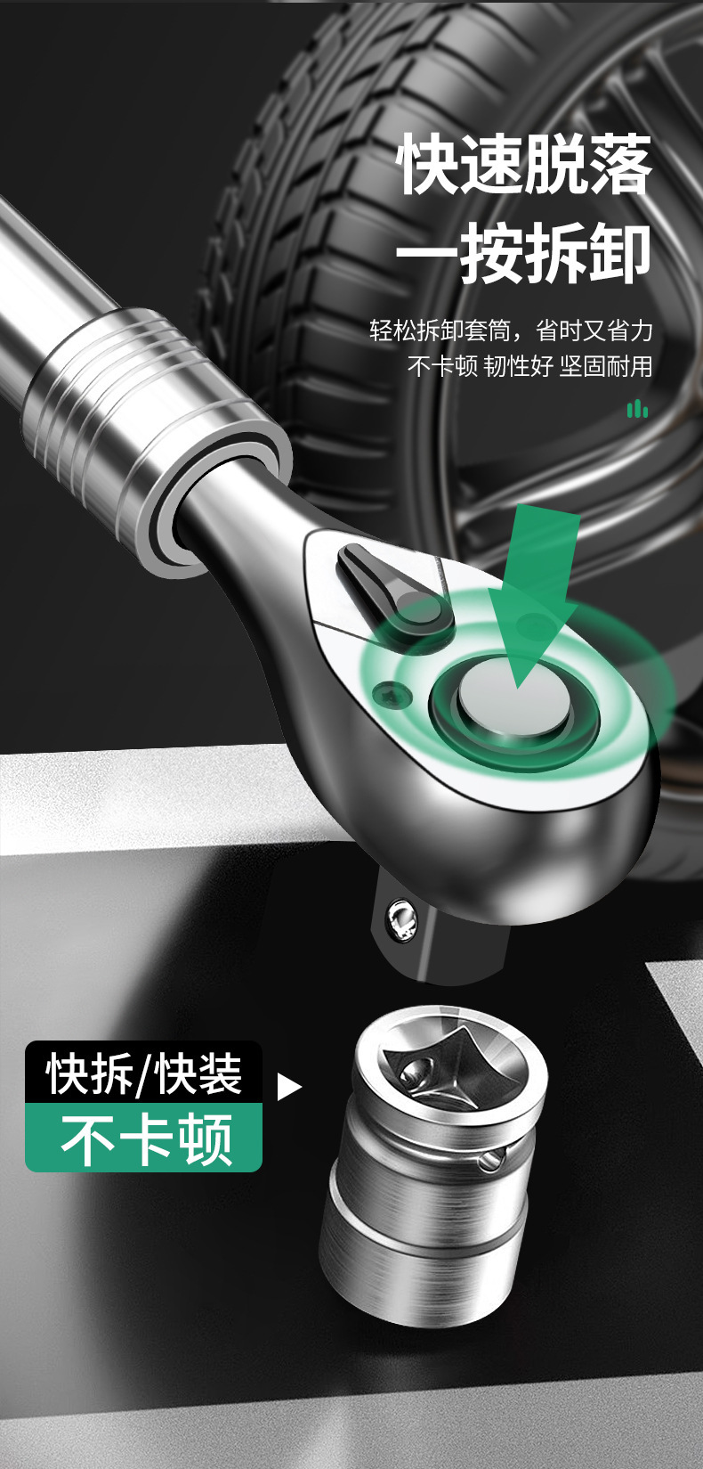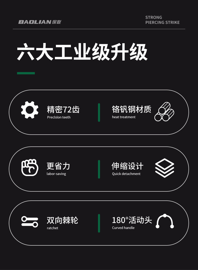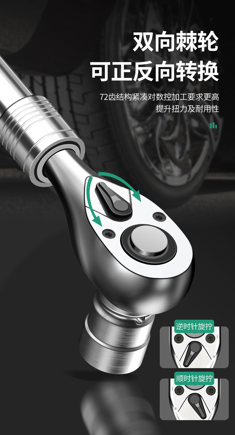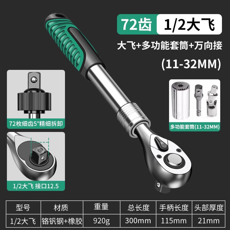 Baolian Dafei Zhongfei Xiaofei 래칫 텔레스코픽 렌치 자동 수리 도구 양방향 소매 퀵 72 기어 펄 니켈스토어 가기